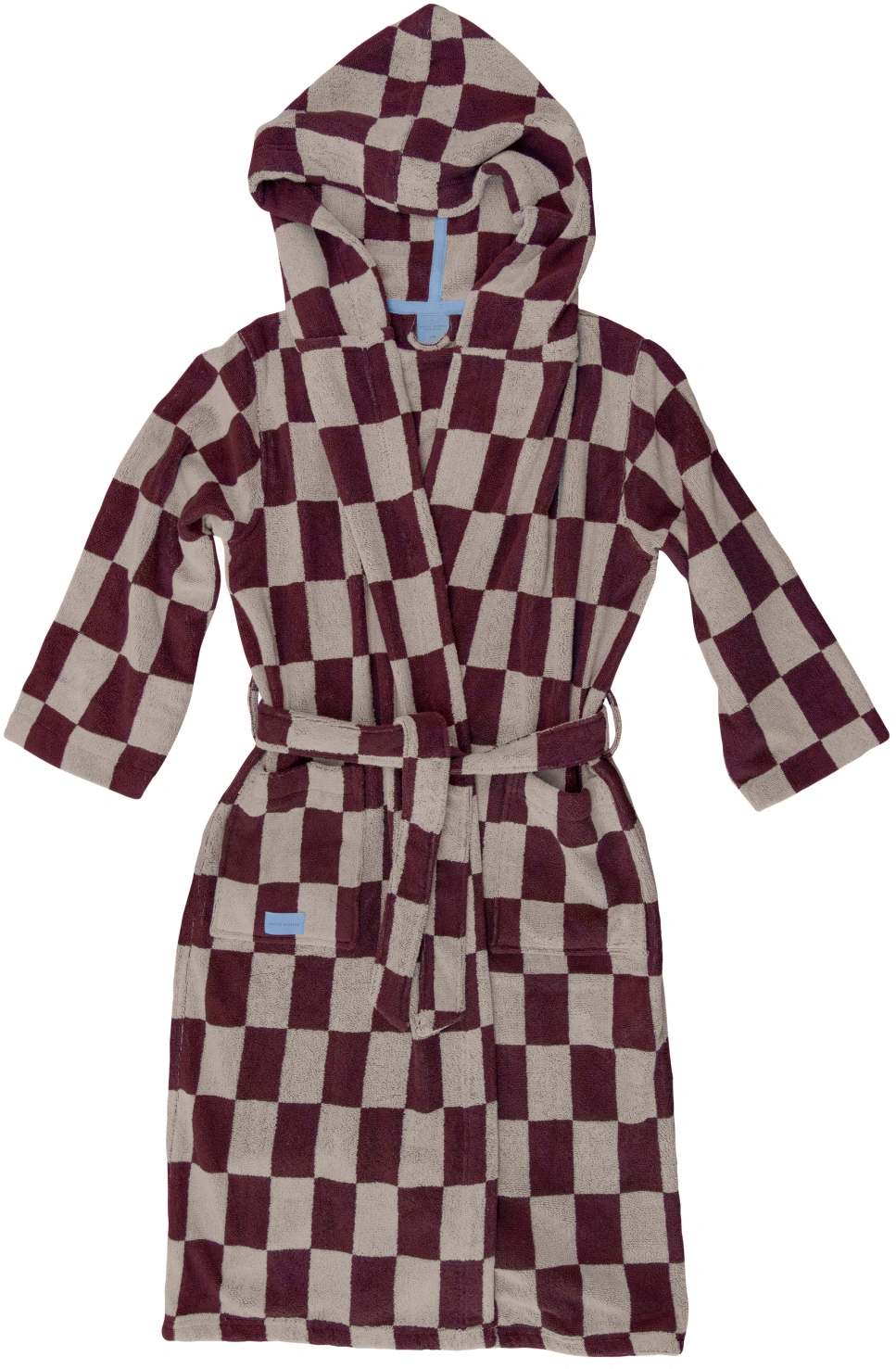 RETRO-kåben er vævet i blød bomuldsfrotté med seriens karakteristiske geometriske mønster i sand og vinrød. Indvendigt tilfører et lyseblåt kontrastbånd og en matchende logolabel på lommen en diskret, håndværksmæssig detalje. Kåben har et unisex, afslappet snit med bindbart taljebælte og sidelommer til små nødvendigheder. Let, behagelig og absorberende – designet til daglig brug. Fås i to størrelser og er et alsidigt valg efter badet, en svømmetur eller til langsomme morgener derhjemme. OEKO-TEX® standard 100-certificeret.Vaskes ved 60° C, tørretumbles ved maksimal varme, undgå skyllemiddel.Længde: 126 cm