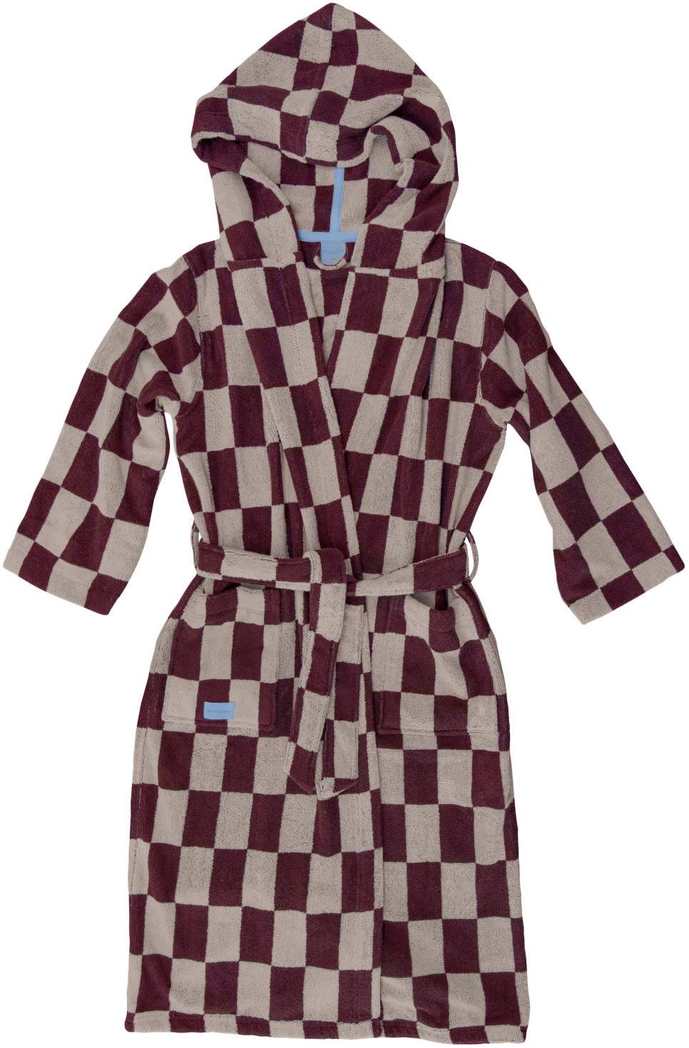 RETRO-kåben er vævet i blød bomuldsfrotté med seriens karakteristiske geometriske mønster i sand og vinrød. Indvendigt tilfører et lyseblåt kontrastbånd og en matchende logolabel på lommen en diskret, håndværksmæssig detalje. Kåben har et unisex, afslappet snit med bindbart taljebælte og sidelommer til små nødvendigheder. Let, behagelig og absorberende – designet til daglig brug. Fås i to størrelser og er et alsidigt valg efter badet, en svømmetur eller til langsomme morgener derhjemme. OEKO-TEX® standard 100-certificeret.Vaskes ved 60° C, tørretumbles ved maksimal varme, undgå skyllemiddel.Længde: 122 cm