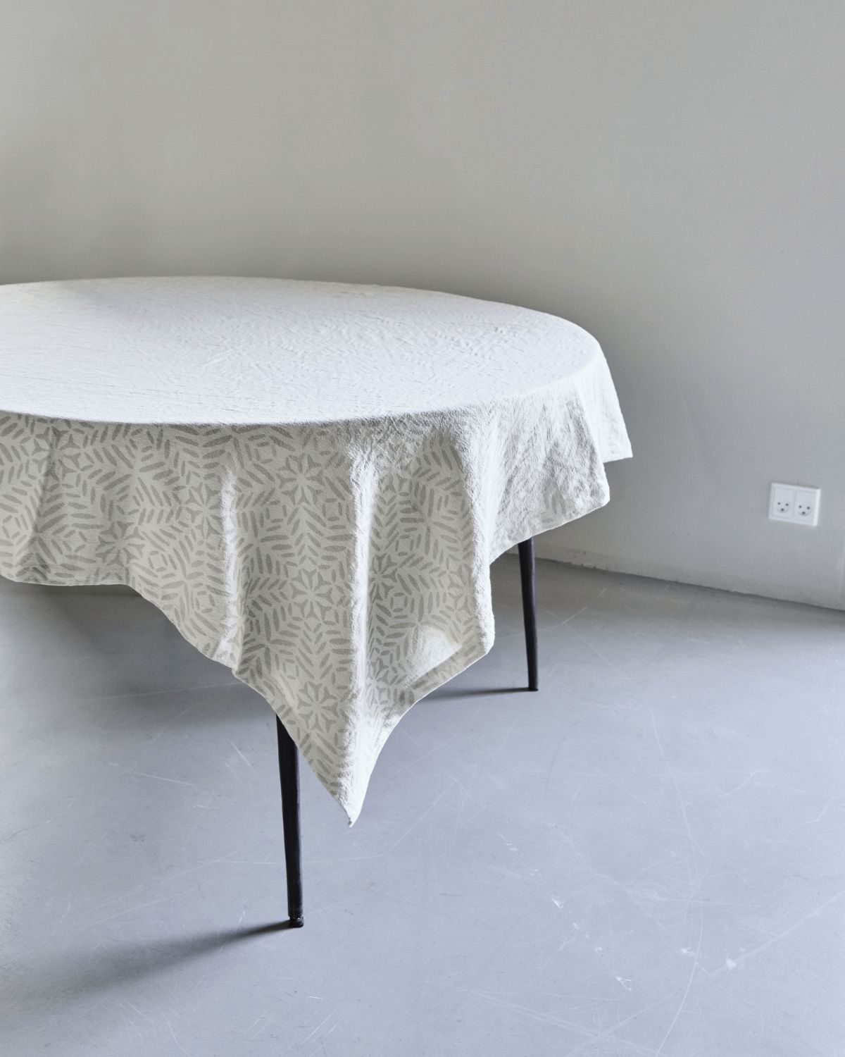 Dugen er fremstillet i 100% bomuld, et naturligt materiale der føles behageligt mod huden og giver bordet en blød, indbydende overflade. Bomuldens naturlige egenskaber sikrer god holdbarhed og komfort, samtidig med at stoffet falder smukt over bordkanten. Det diskrete farvevalg med hvid og grå nuancer gør Clip-dugen til en alsidig løsning, der passer ind i enhver indretningsstil – fra det moderne minimalisme til den klassiske skandinaviske æstetik.