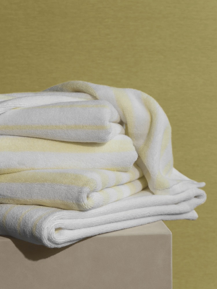 Det stribede design gør ARTO-håndklædet til mere end blot et funktionelt tekstil. Det fungerer som et dekorativt element, der kan tilføre farve og stil til badeværelset. Den gennemtænkte kombination af hvid og transparent yellow giver en frisk og moderne æstetik, der passer til både klassiske og moderne indretningsstile.