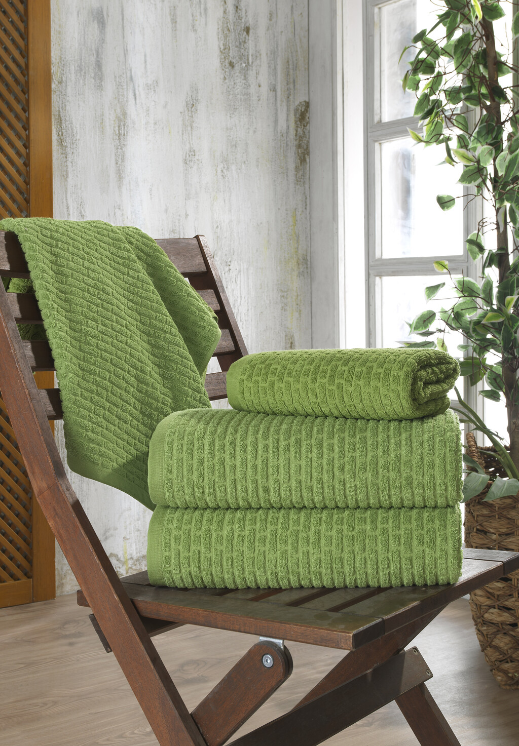 Håndklæder i størrelsen 70x140 cm.Pakke med 2 håndklæder i farven olive green, håndklæderne er produceret i 100% økologisk bomuld.
