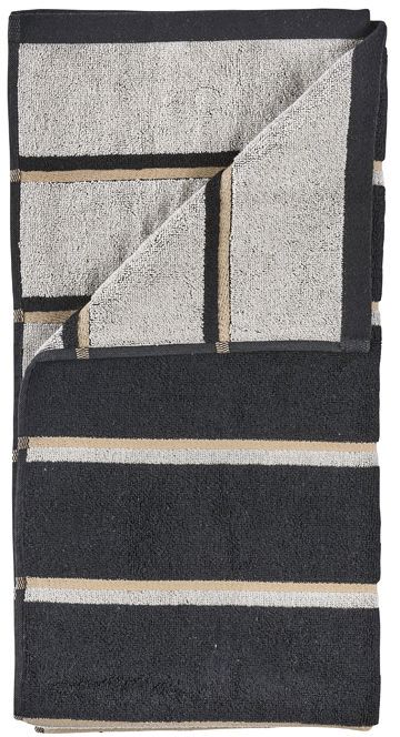 Zone Denmark har valgt garnfarvet bomuld i en kraftig 600 grams kvalitet, hvilket sikrer både holdbarhed og en blød fornemmelse mod huden. Den tætte vævning giver håndklædet en dejlig tyngde og en luksuriøs følelse, samtidig med at absorptionsevnen er optimal. Kombinationen af sort, soft grey og camel skaber en sofistikeret farvepalet, der let kan integreres i forskellige indretningsstile – fra minimalistiske skandinaviske badeværelser til mere eklektiske rum.