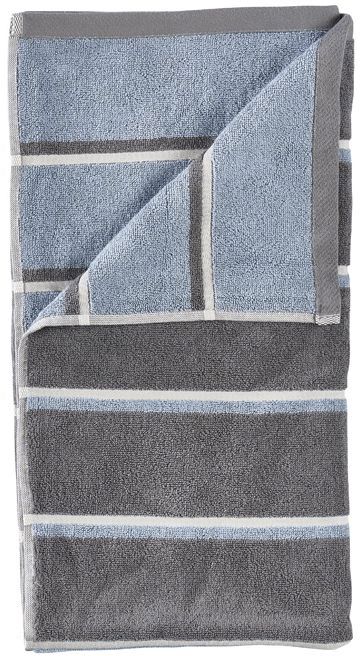 Håndklædets unikke design byder på en gennemtænkt farvesammensætning i Grey/Blue Fog/Soft Grey, der giver et moderne og stilfuldt udtryk. En særlig detalje ved Sauna-serien er, at hver side af håndklædet fremhæver sin egen dominerende farve. Dette giver dig mulighed for at skifte mellem to forskellige visuelle udtryk alt efter, hvordan du folder eller hænger håndklædet. Det retroinspirerede stribet mønster tilføjer et grafisk og urbant touch, der passer perfekt ind i det moderne badeværelse.