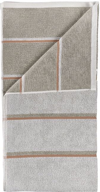 Designet henter inspiration fra de klassiske træbeklædte saunaer, hvor stramme linjer og arkitektonisk præcision danner fundamentet for et visuelt stærkt udtryk. De markante striber skaber en elegant leg med perspektiv og farvebalance, der giver håndklædet et distinkt, retroinspireret udtryk med et moderne, urbant twist. Det grafiske mønster tilfører personlighed og karakter til badeværelset og fungerer næsten som et kunstværk i sig selv.