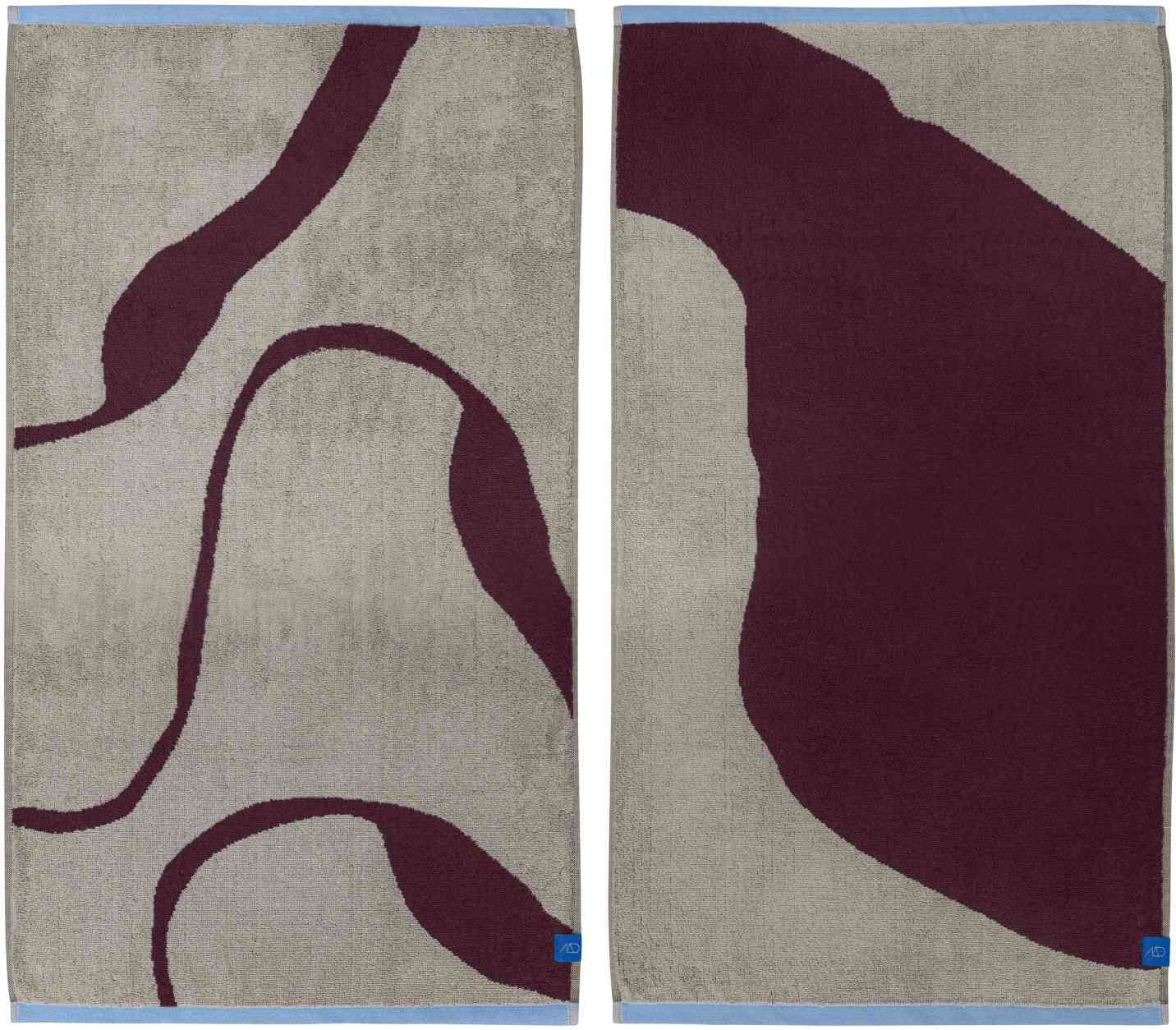 Tilføj et kunstnerisk præg til hverdagen med NOVA ARTE håndklæderne i wine red/sand. Sættet indeholder to håndklæder, hver med sit eget udtryksfulde motiv af vinrøde penselstrøg og grafiske former på sandfarvet baggrund, indrammet af lyseblå kanter. Designet afspejler seriens kreative essens og bevarer et harmonisk og elegant udtryk. Fremstillet i 100% økologisk bomuld for en blød, holdbar og højt absorberende kvalitet. For bedste sugeevne anbefales det at lægge håndklæderne i blød i koldt vand i 24 timer før første brug. OEKO-TEX® standard 100-certificeret.Vaskes ved 60° C, tørretumbles ved maksimal varme, undgå skyllemiddel.Længde: 90 cm