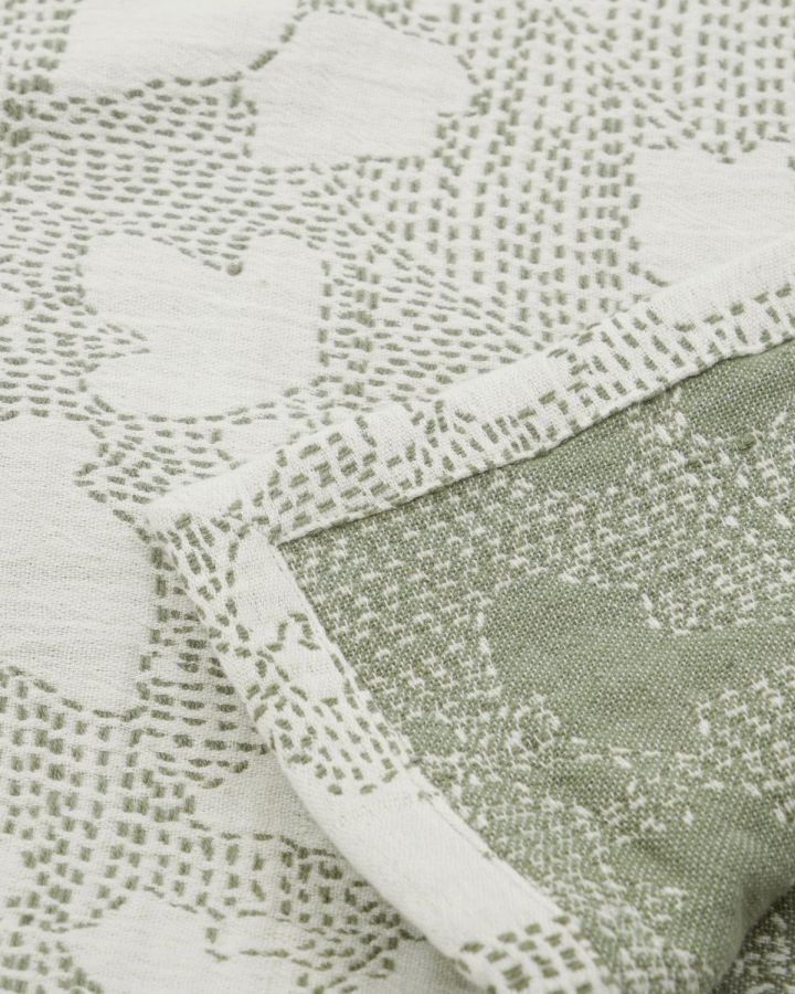 House Doctor Mori sengetæppe bringer en harmonisk balance af farver og tekstur ind i soveværelset. Det karakteristiske jacquardmønster skaber et visuelt spil mellem råhvide og kakifarvede nuancer, der giver rummet en rolig og indbydende atmosfære. Den bløde bomuldskvalitet sikrer en behagelig fornemmelse, mens det håndlavede præg understreger produktets autenticitet.Sengetæppet er vævet i ren bomuld, hvilket giver en naturlig åndbarhed og en blød tekstur, der føles dejlig mod huden. Jacquardvævningen skaber et diskret, men raffineret mønster, der tilføjer dybde og dimension til tekstilet. Den neutrale farvekombination gør det nemt at integrere tæppet i forskellige indretningsstile – fra skandinavisk minimalisme til moderne boligindretning med varme jordtoner.