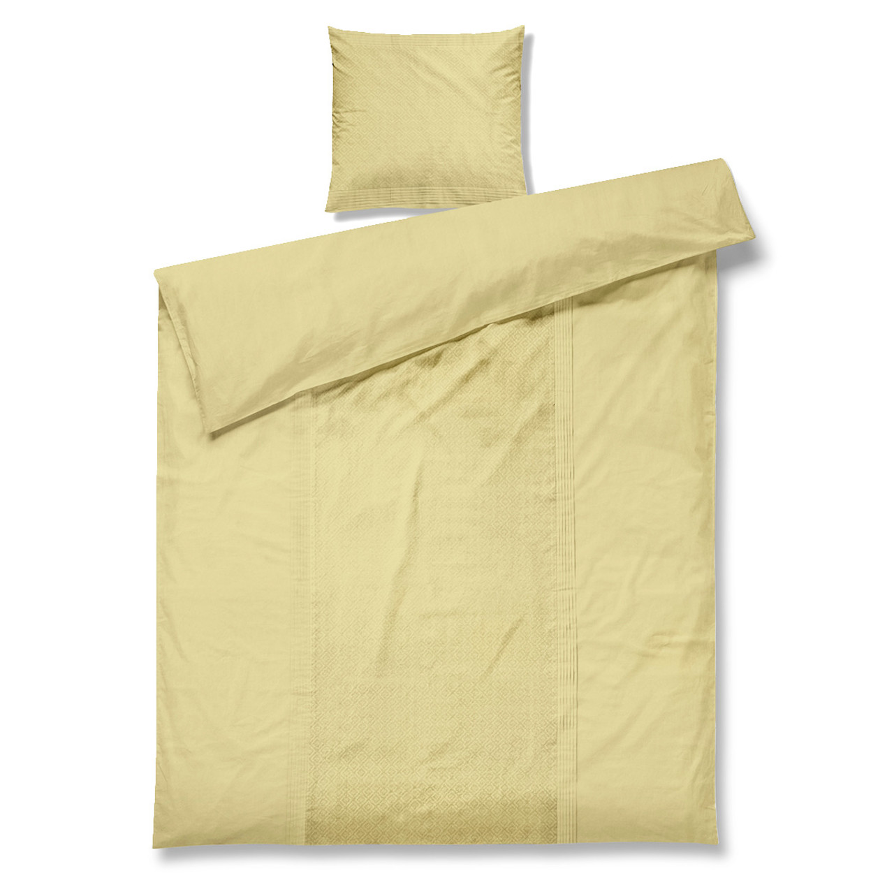 Skønt, gult Aristo-sengetøj fra JUNA. Sengetøjet er lavet i den lækreste bomuld, hvilket gør det fantastisk at sove med. Sengesættet har en jaquardvævet bort i midten og læg i hver side. Dynebetrækket måler 140x200 cm og hovedpudebetrækket måler 60x63 cm. Dynebetrækket lukkes med knapper, mens pudebetrækkene hra en ekstra dyb flaplukning. Alt JUNA-sengetøj er OEKO-TEX®-mærket samt Clevercare-mærket. Clevercare er en mærkning, der arbejder for at mindske klimabelastningen ved bl.a. ikke at vaske for ofte. Anbefalet vask for Aristo-sengetøj er ved 40 grader.Serie:Aristo