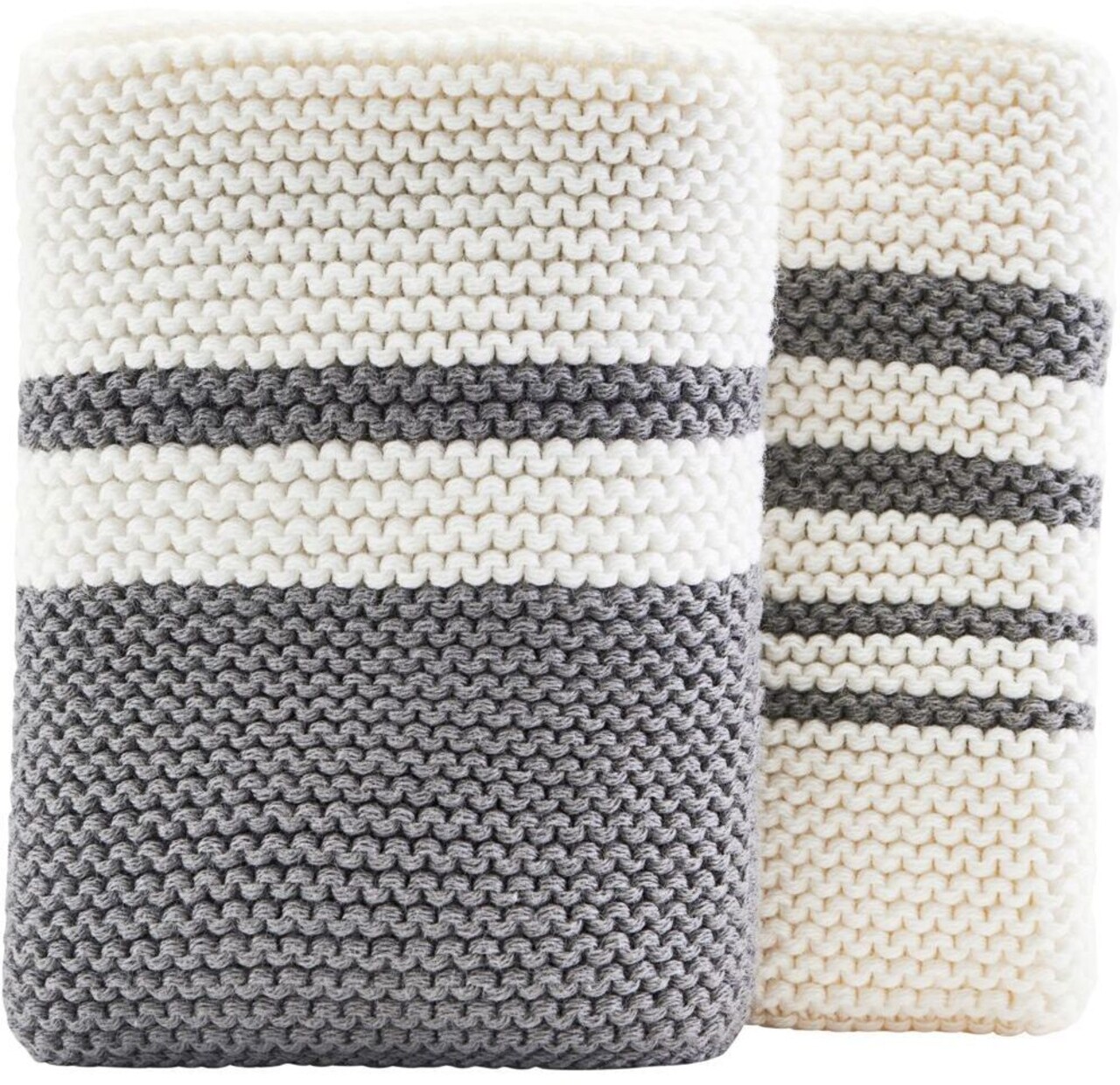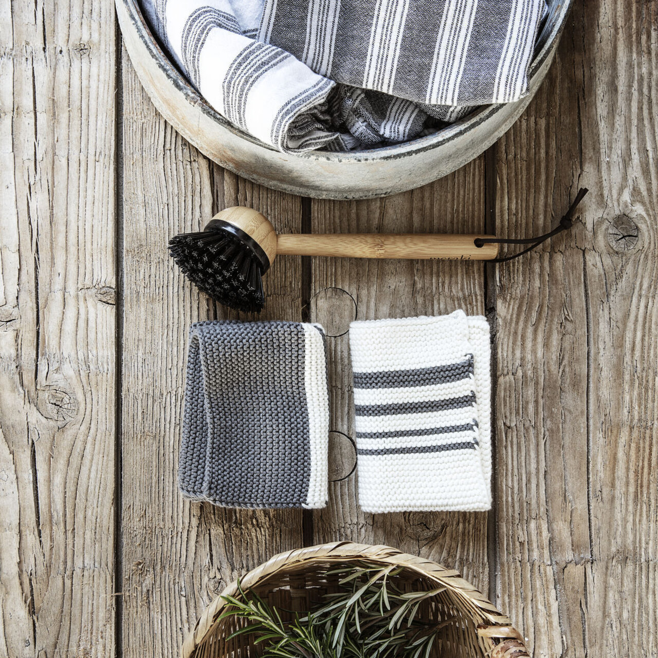 Stilrene og flotte klude fra Meraki, som du nemt kan have liggende fremme. Kludene kommer som et sæt med to styks, i to forskellige farver og er lavet af 100% bomuld. Den ene kommer i hvid med et gråstribet mønster og den anden kommer i en grå farve med hvide detaljer. Pure hedder kludene og de måler hver især 25 cm. i længden og 25 cm. i bredden. Et par perfekte klude, som er både praktiske og flotte.Brug dem i køkkenet til hverdagsbrug eller på badeværelset til at vaske dit ansigt med morgen og aften.