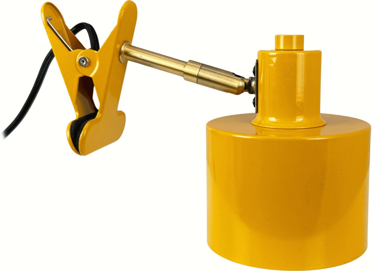 - Klemmelampe i metal med karryfarve og messingdetaljer
