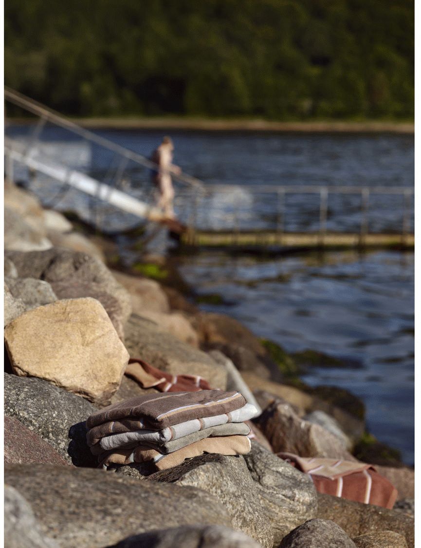 Zone Denmark er kendt for at forene skandinavisk designtradition med moderne æstetik, og Sauna-serien er intet undtagelse. Det grafiske mønster gør håndklædet til mere end blot et funktionelt tekstil – det bliver et designelement, der sætter sit præg på rummet. Uanset om du foretrækker de varme toner i Camel, de kølige nuancer i Ice Blue eller de naturlige toner i Olive Green, vil håndklædet tilføre karakter og stil til dit badeværelse.
