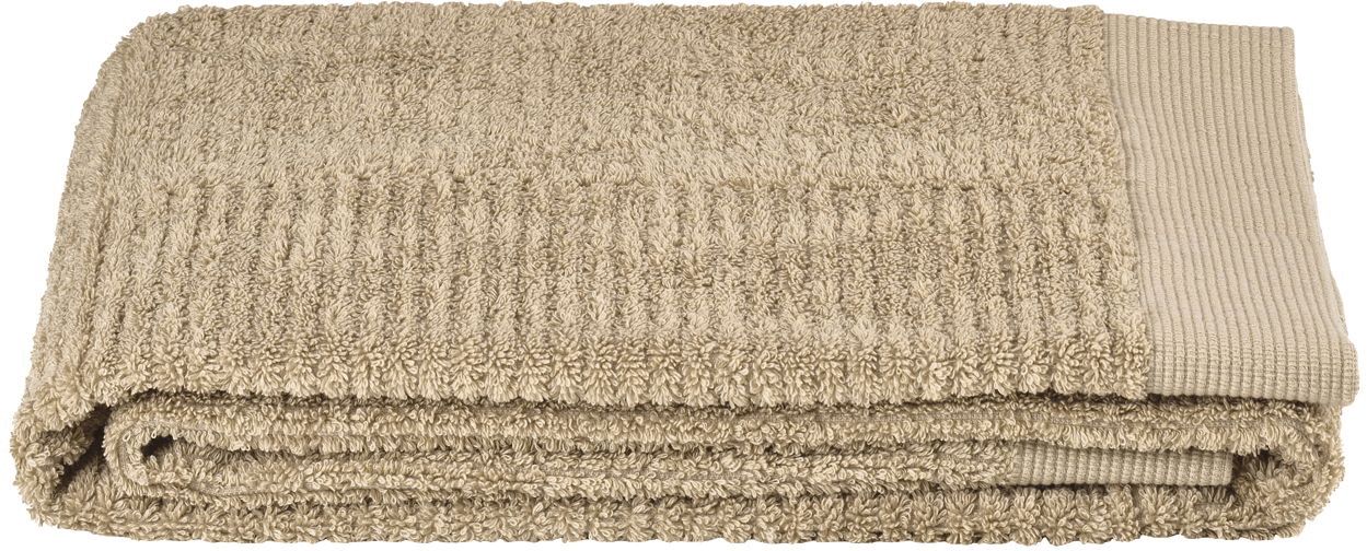 Zone Denmark Classic Badehåndklæde i camel er et tidløst og praktisk valg til badeværelset, hvor kvalitet og funktionalitet går hånd i hånd. Dette badehåndklæde er fremstillet i 100% bomuld med en vægt på 600 g, hvilket sikrer en blød og behagelig fornemmelse mod huden efter bruseren eller badet.Håndklædet er designet til at holde på sin form og fyldighed gennem gentagne vaske, så du kan nyde samme komfort og kvalitet over lang tid. Den høje sugeevne gør det effektivt til at tørre dig hurtigt, mens den smukke camel-farve bevarer sin dybde og mæthed vask efter vask. Med sine generøse mål på 70 x 140 cm er det perfekt til at svøbe dig ind i efter badet.