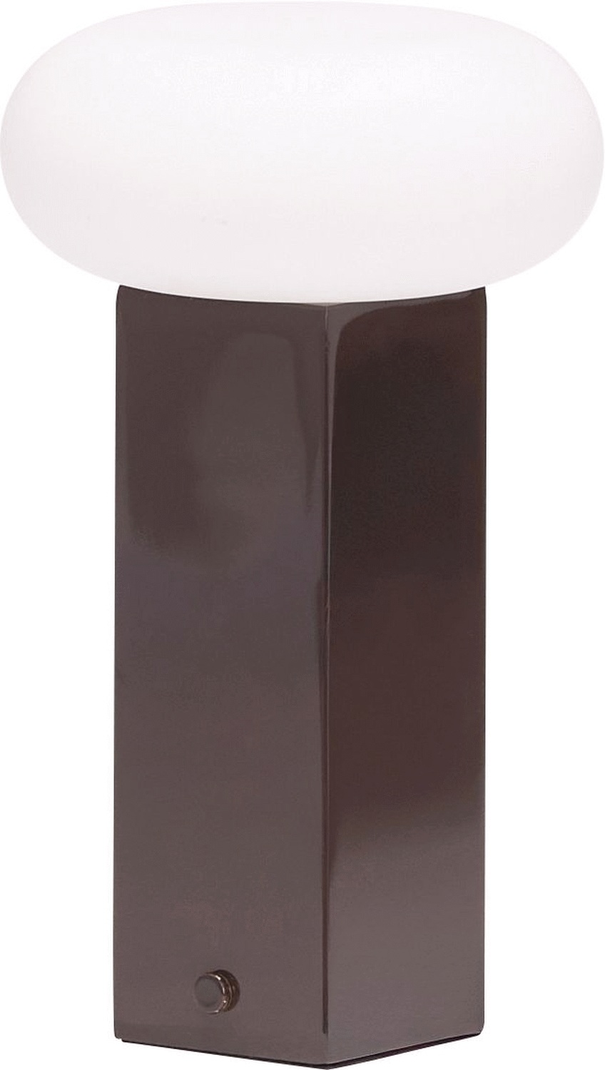 Lampens elegante konstruktion består af en skinnende brun overflade i jern, der harmonerer smukt med skærmen i opalglas. Denne kombination af materialer skaber et blødt og behageligt lys, der spreder sig jævnt i rummet og skaber en indbydende atmosfære. Den trådløse funktion gør lampen utrolig fleksibel i brugen – du kan nemt flytte den fra stue til soveværelse, fra skrivebord til terrasse, alt efter hvor du har brug for ekstra belysning.