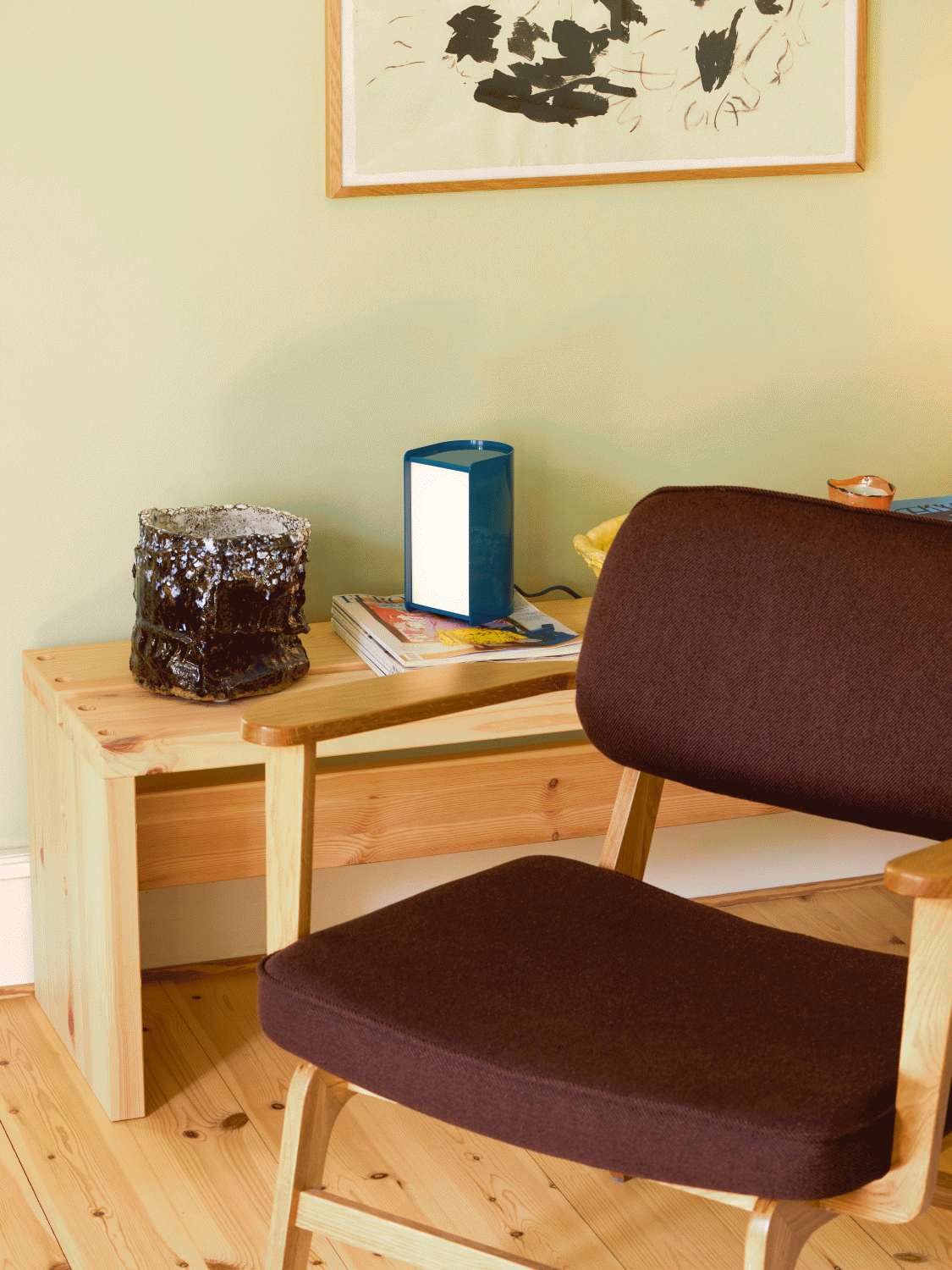 Book Bordlampe er fremstillet i en kombination af jern og glas, materialer der sikrer både holdbarhed og en elegant finish. Petrolfarven tilfører dybde og karakter til indretningen og fungerer smukt sammen med både neutrale og mere farverige interiører. Med sine kompakte mål passer lampen perfekt på natbordet, skrivebordet eller i reolen uden at fylde unødigt.