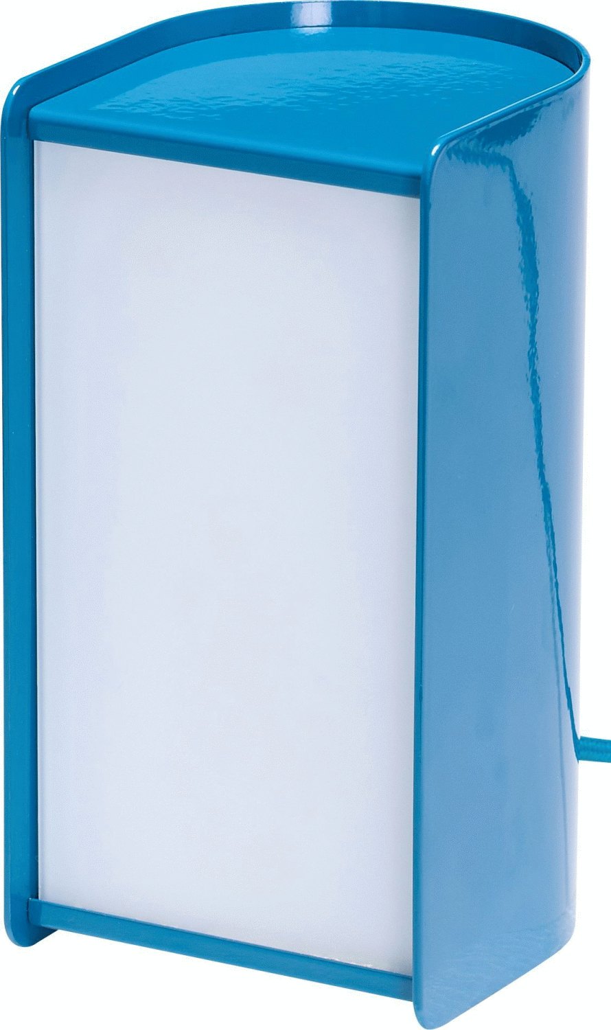 - Fremstillet i jern og glas med en dyb petrolfarve