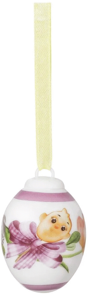 Påskeægget er fremstillet i fineste porcelæn og dekoreret med det fortryllende Osterküken-motiv, hvor en sød kylling præsenteres i flerfarvede nuancer. Den ovale form gør det til en tidløs og elegant dekoration, der passer perfekt ind i enhver påskeudsmykning. Med sin kompakte størrelse kan det placeres diskret på bordet, i vindueskarmen eller som en del af en større påskearrangement.