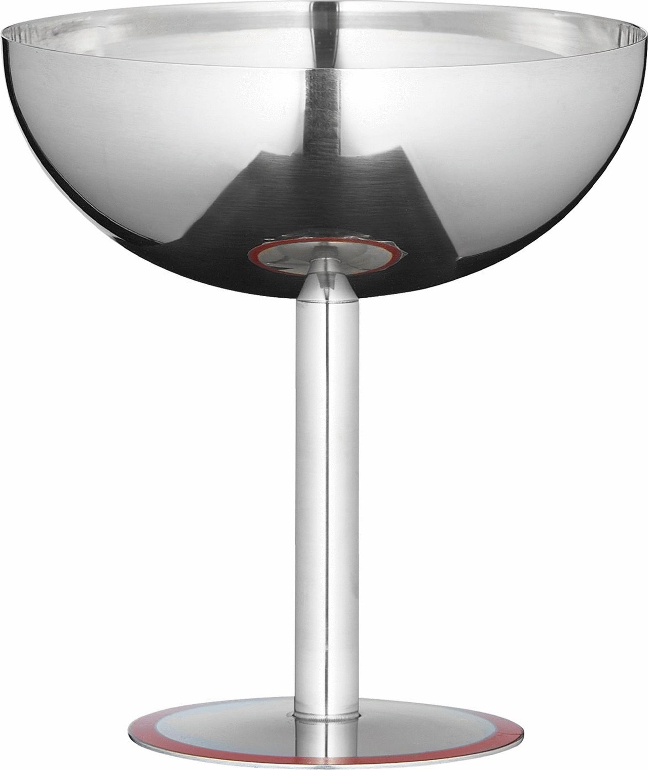 - Elegant dessertskål i rustfrit stål med rød detalje på foden