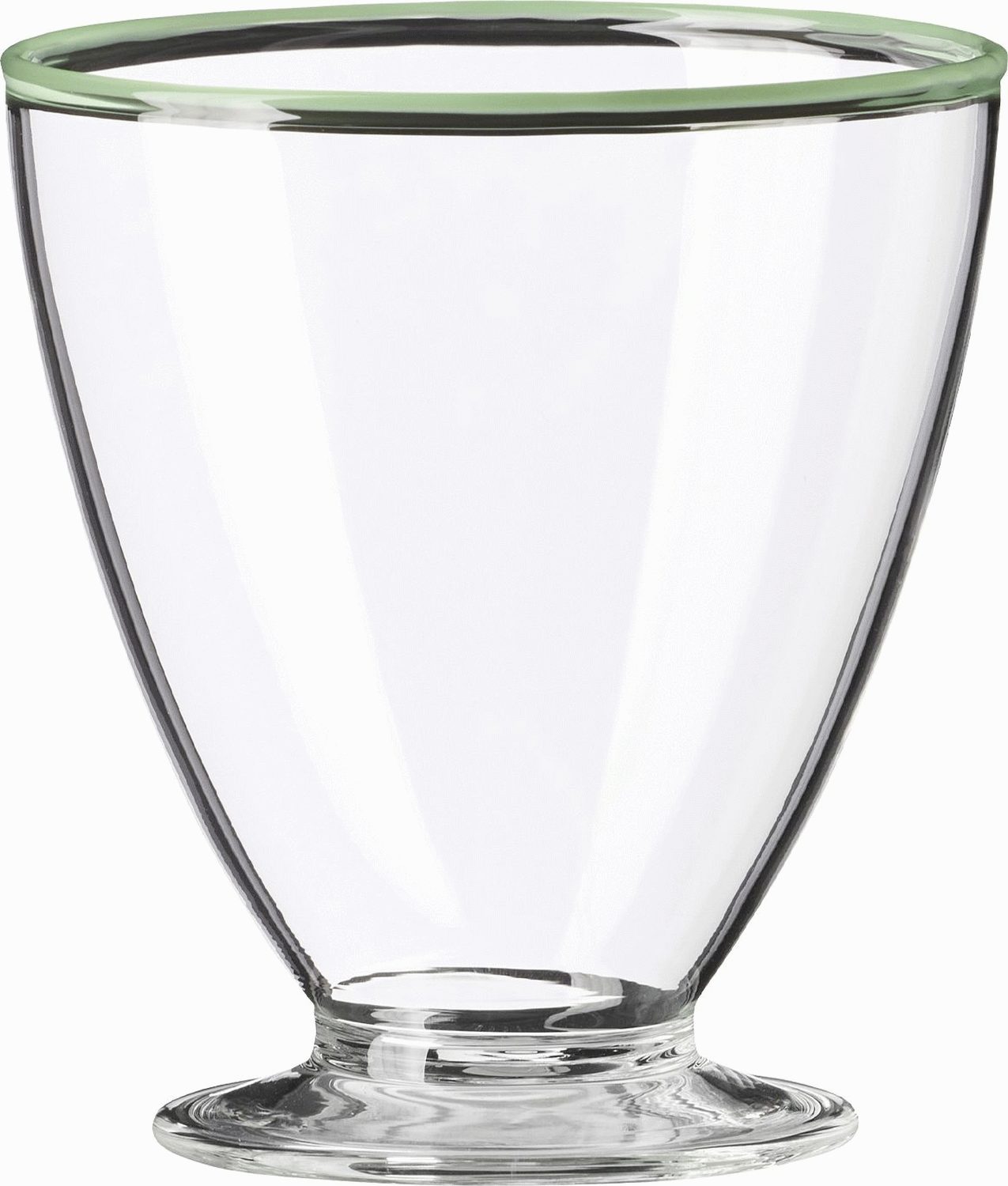 - Dessertglas i borosilikatglas med pistaciegrøn farvestreg