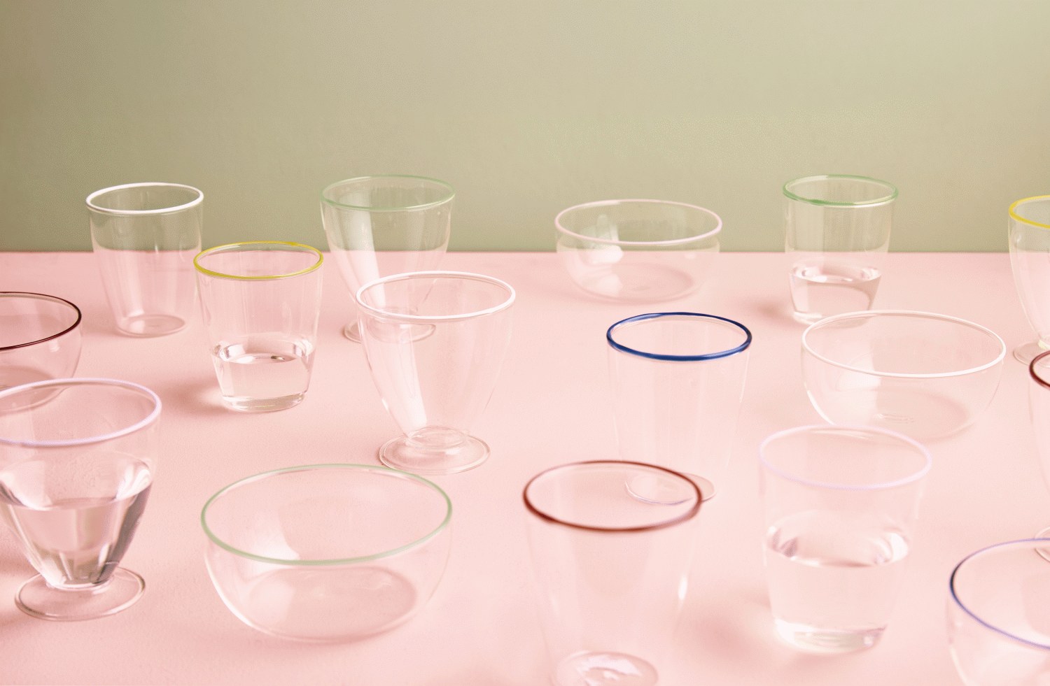 - Elegant dessertglas med lyserød Candyfloss-streg langs kanten