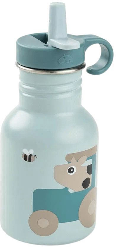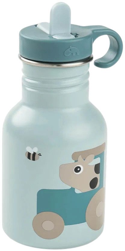 Done by Deer Tiny Farm Flaske 350 ml. i blå er designet til at gøre hverdagen lettere for både børn og forældre. Denne gennemtænkte drikkeflaske kombinerer funktionalitet med et charmerende design, der appellerer til de mindste i familien.Flasken er udstyret med et smart skjult sugerør, som forbliver beskyttet mellem hver slurk. Dette sikrer, at sugerøret holder sig rent og hygiejnisk, selv når flasken ligger i tasken eller rulles rundt på gulvet. Designet tager højde for børns aktive hverdag, hvor drikkeflaske ofte udsættes for hård behandling.