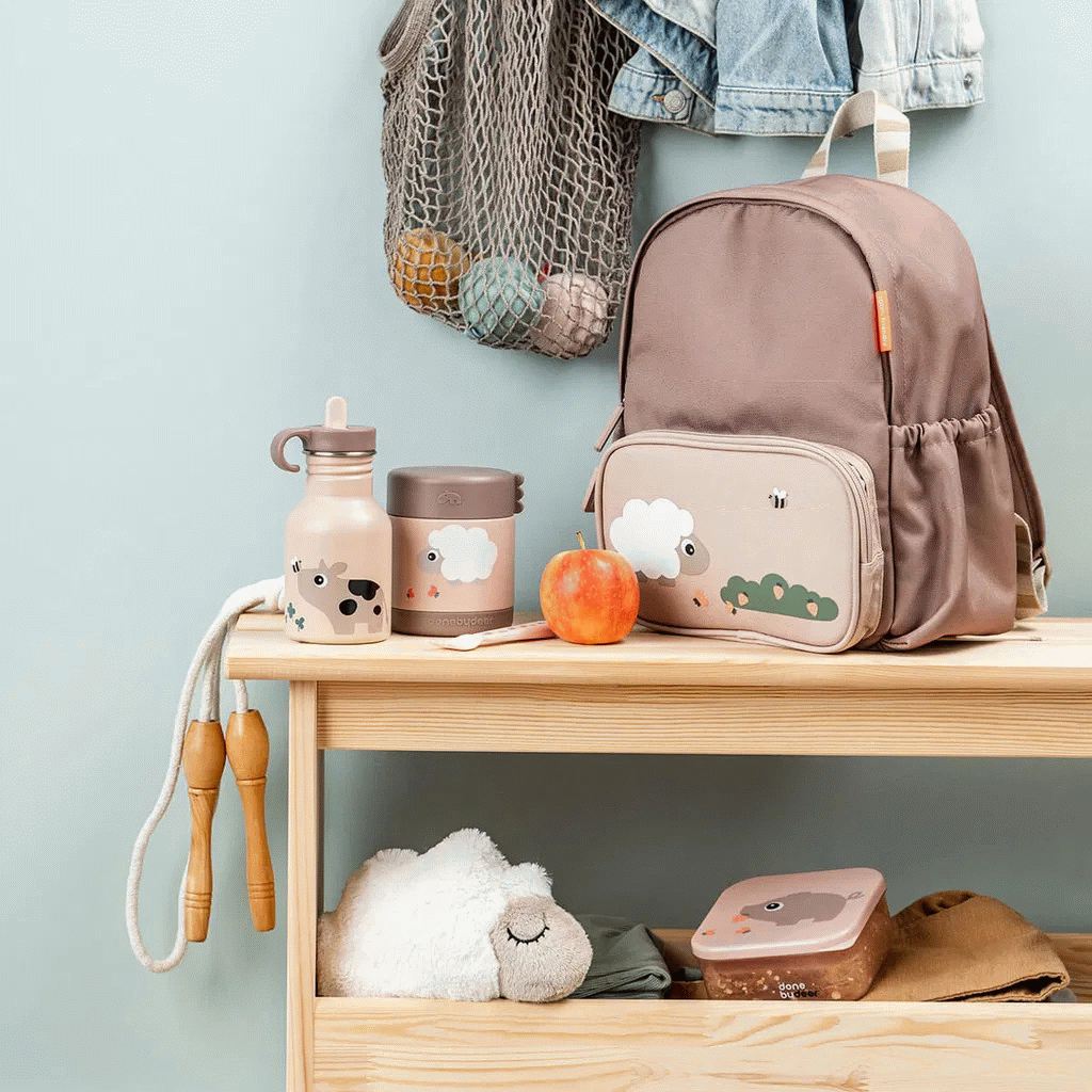 Den pudderfarvet nuance giver flasken et blødt og moderne udtryk, der passer ind i ethvert børneværelse eller køkken. Done by Deer er kendt for deres skandinaviske designtilgang, hvor funktionalitet møder stilren æstetik, og Tiny Farm-kollektionen er ingen undtagelse. Flasken er både praktisk og visuelt tiltalende, hvilket gør den til en favorit blandt både børn og forældre.
