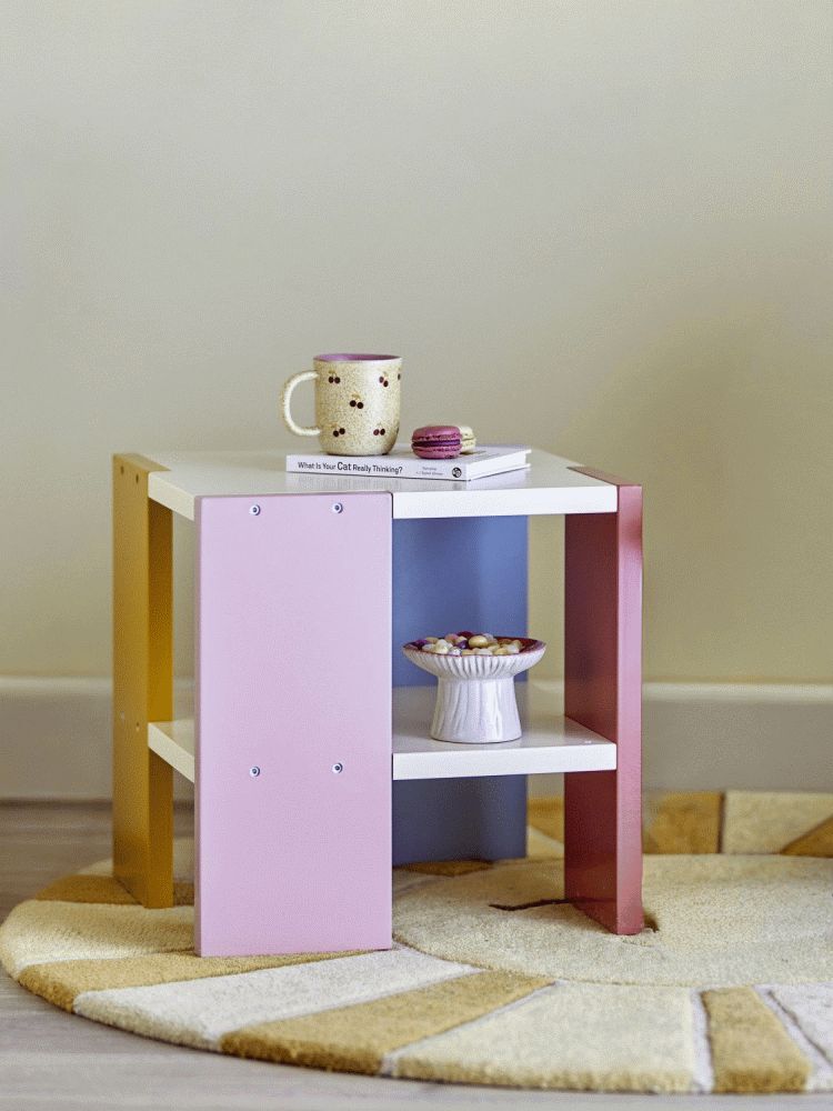 Coloria Bordet fra Bloomingville MINI er lavet af FSC-certificeret MDF og har farverige sider i rosa, gul, blå og rød. Det enkle, firkantede design giver bordet et legende udtryk og gør det til en fin detalje på børneværelset.Længde: 35 cm