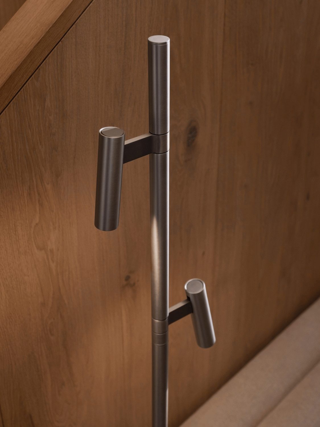 Designet af danske Nital Studio udmærker sig Makoto ved sin vertikale, minimalistiske silhuet. Den børstede kromfinish i satinkrom skaber en varm og diskret overflade, der blødgør det industrielle udtryk og giver lampen karakter. Aluminiumskonstruktionen sikrer både holdbarhed og en let æstetik, der ikke dominerer rummet, men i stedet komplementerer det.