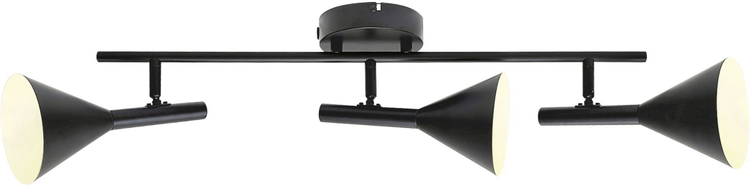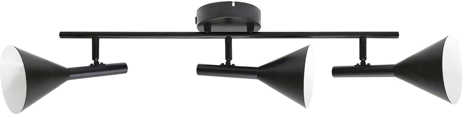 - Tre kegleformede skærme i sort metal med grafisk udtryk