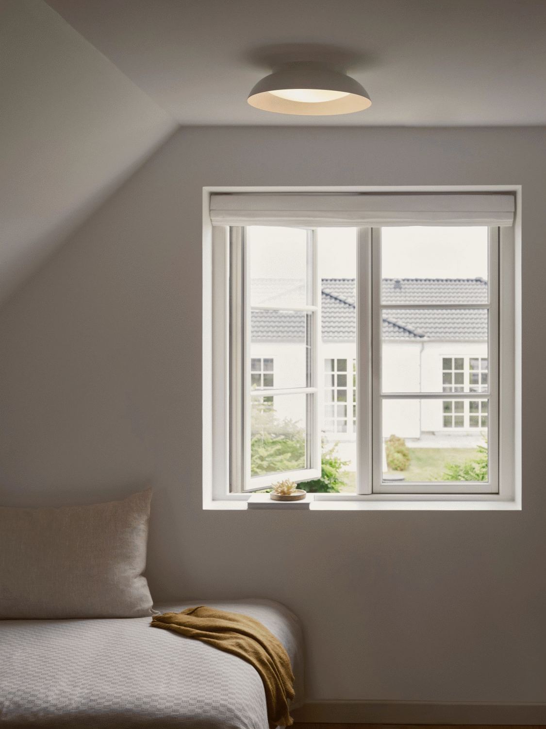 Nordlux Nivora er fremstillet i metal, hvilket sikrer en robust konstruktion og lang levetid. Den hvide farve gør lampen alsidig og let at kombinere med eksisterende interiør. Med en diameter på 38 cm og en lav højde på kun 10,5 cm er den ideel til rum med normale lofthøjder, hvor den ikke dominerer, men stadig giver tilstrækkelig belysning.