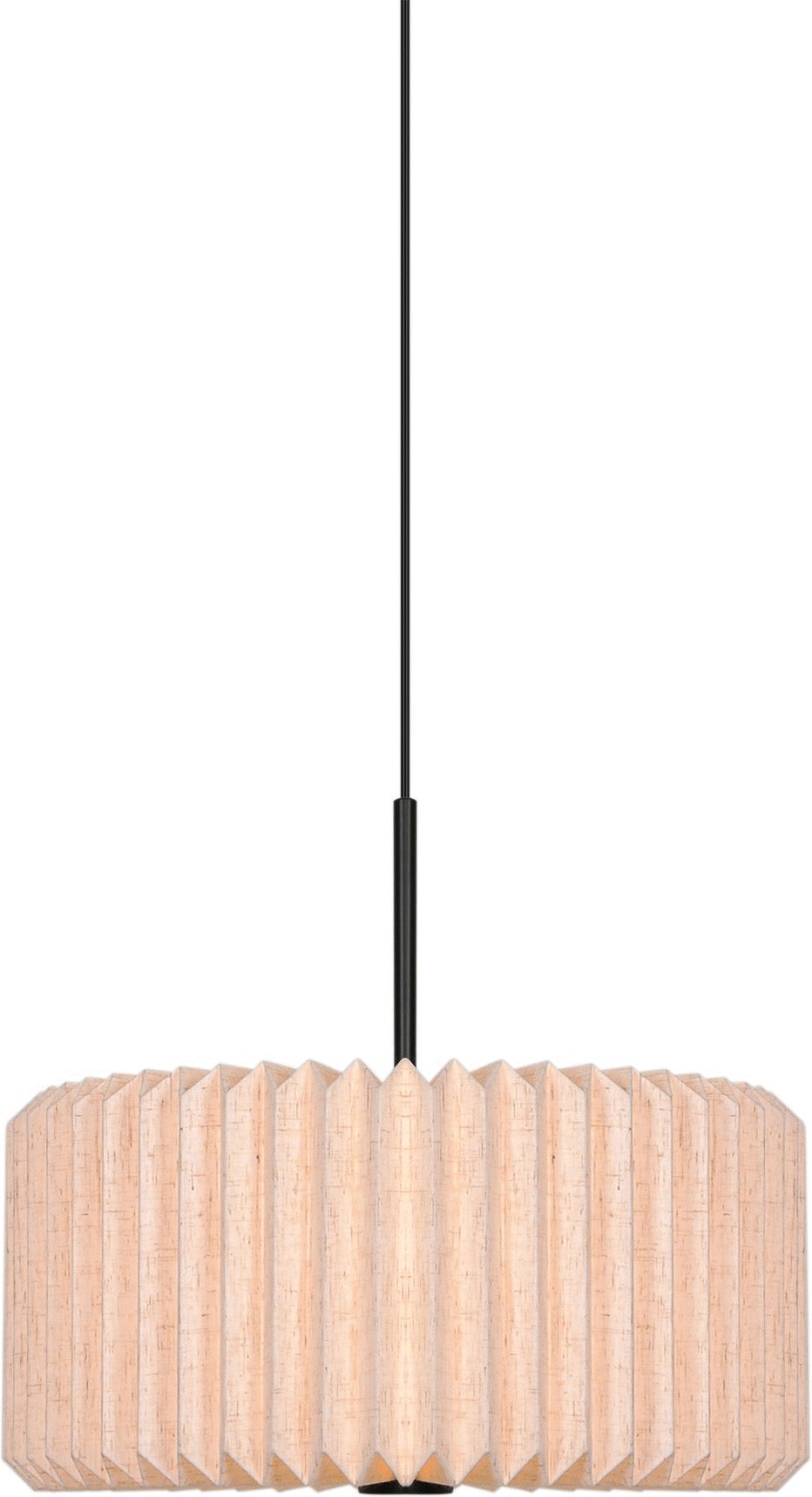 - Elegant pendel i sort med plisseret tekstilskærm