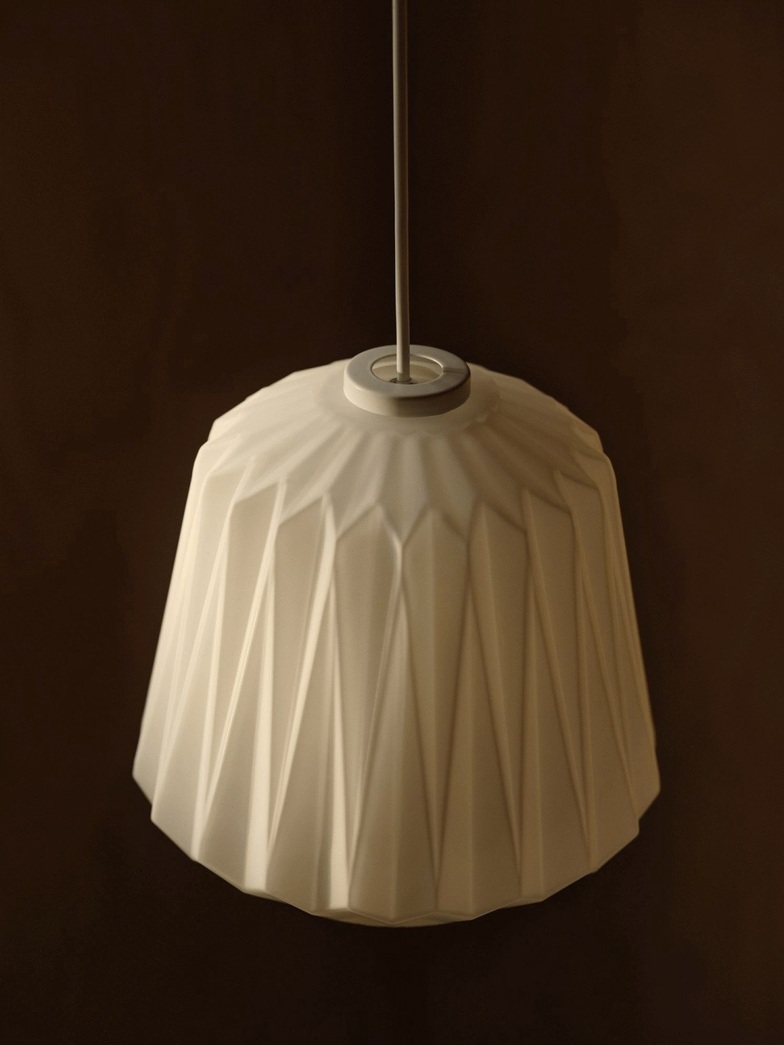 De diskrete plisserede detaljer, der pryder skærmen, tilføjer en raffineret tekstur og giver pendlen et ekstra lag af visuel interesse. Disse subtile folder fanger lyset på en elegant måde og skaber et spil af skygger, der forstærker designets karakter uden at overvælde. Det er disse gennemtænkte detaljer, der løfter Elbie fra at være en simpel lampe til at blive et stilfuldt designobjekt.