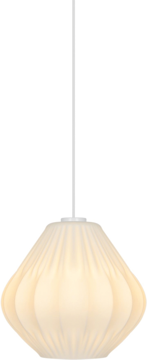 Nordlux Maluca pendel i opal hvid er en lampe, der kombinerer tidløs elegance med funktionel belysning. Med sin runde skærm i mat opalglas skaber denne pendel et behageligt og diffust lys, der spreder sig jævnt i rummet og giver en indbydende atmosfære. Det matte opalglas sikrer, at lyset bliver blødt og behageligt for øjnene, hvilket gør lampen ideel til både spisestuen, køkkenet og entréen.Designet er kendetegnet ved sine klassiske former, der er blevet fortolket med en moderne sans for enkelhed. De diskrete plisserede detaljer langs skærmens kant tilfører en raffineret tekstur og giver lampen en ekstra dimension af karakter. Denne subtile detalje bryder den glatte overflade og skaber et spil mellem lys og skygge, der fremhæver lampens håndværksmæssige kvalitet.
