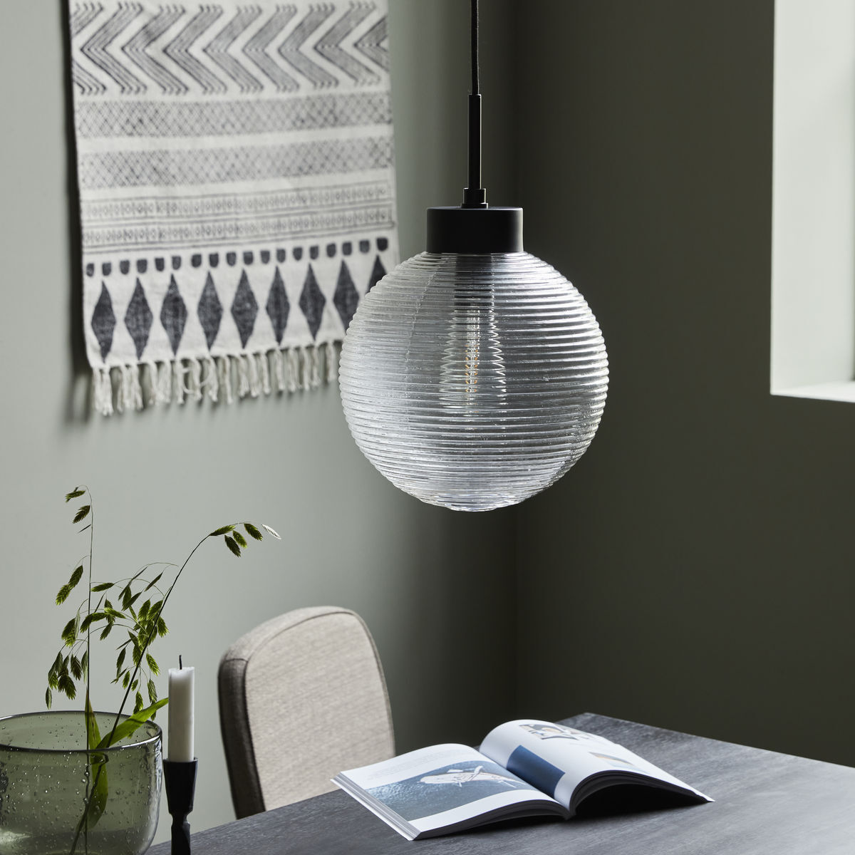 Få et anstrøg af uformel elegance i dit hjem med den store Gaia lampe fra House Doctor. Den håndlavede, rillede glaslampeskærm tilføjer en taktil følelse til den runde pendellampe, mens jernbasen fuldender designet med et industrielt udtryk. Det klare glas gør lampen perfekt til enhver boligindretning og giver dit læsehjørne, stuen eller hjemmekontoret en blød, funktionel belysning. Lampen passer også godt over spisebordet. Uanset hvordan du bruger den, vil Gaia lampen tilføje subtil elegance og stil.Specifikationer: E27, Max 25 W, 3 m sort stofledning, Håndlavet glass