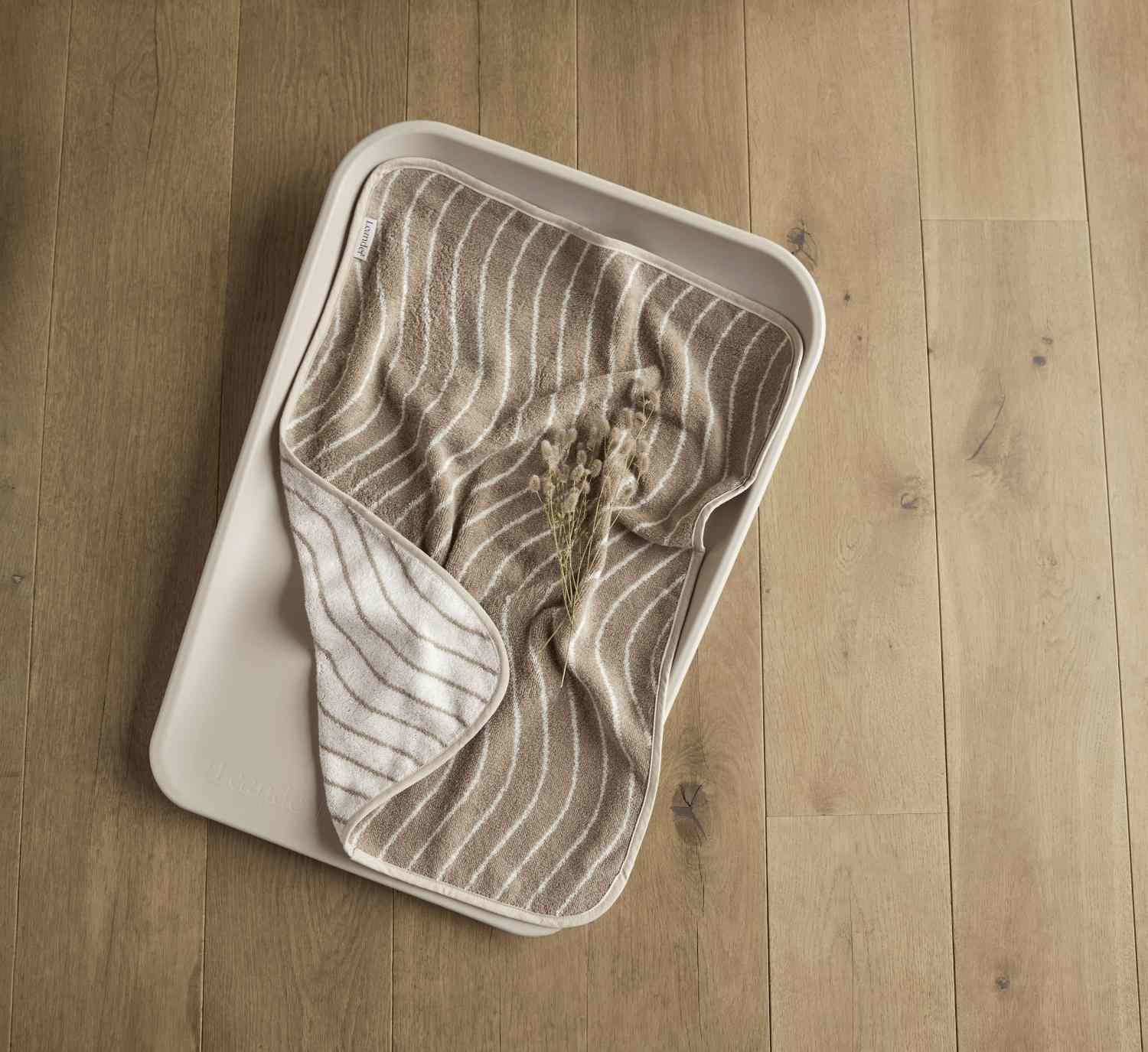 Leander Woodland Topper til puslepuden forener funktionalitet med kunstnerisk design og gør skiftestunden både praktisk og visuelt tiltalende. Denne topper er skabt til at passe perfekt til formen på Leander Matty™ puslepuden og Leander Wally™ væghængt puslebord, hvor den fungerer som et beskyttende lag, der forlænger puslepudens levetid.Topperen er fremstillet i blød bomuldsfrotté, der er behagelig mod babys hud og absorberer fugt effektivt under blebytning. Du kan bruge den som et lille håndklæde eller lægge den under din baby for at beskytte puslepuden mod slid og snavs. Dette sikrer, at din puslepude forbliver i god stand gennem mange års brug.