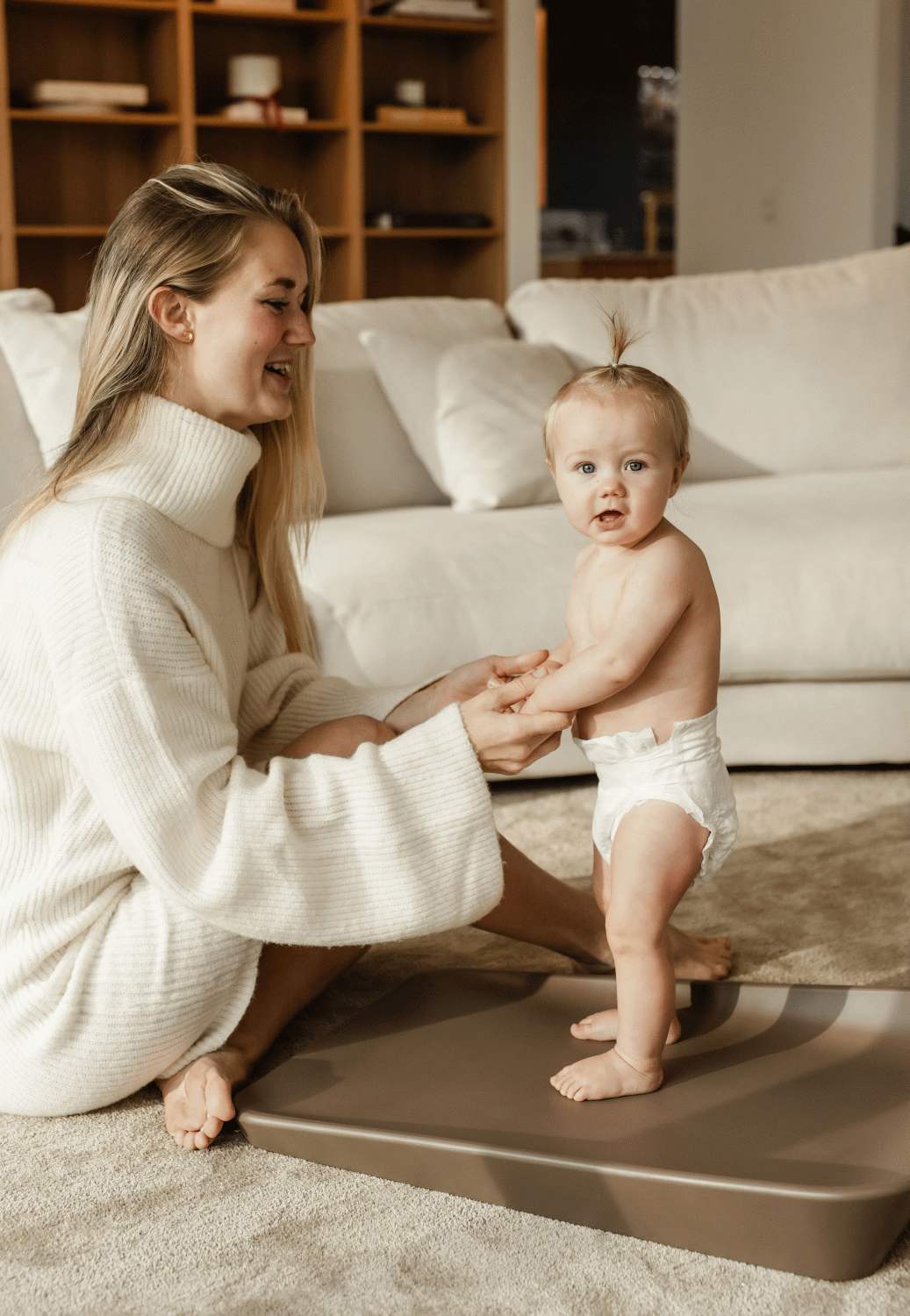 Puslepuden har en stabil og skridsikker bund, der sikrer fast placering på kommode, bord eller gulv. De små gummifødder under puden skaber ventilation og forhindrer fugtophobning, så der ikke efterlades mærker på underlaget. Den gennemtænkte konstruktion gør det nemt og sikkert at skifte dit barn, uanset hvor du vælger at placere puden.