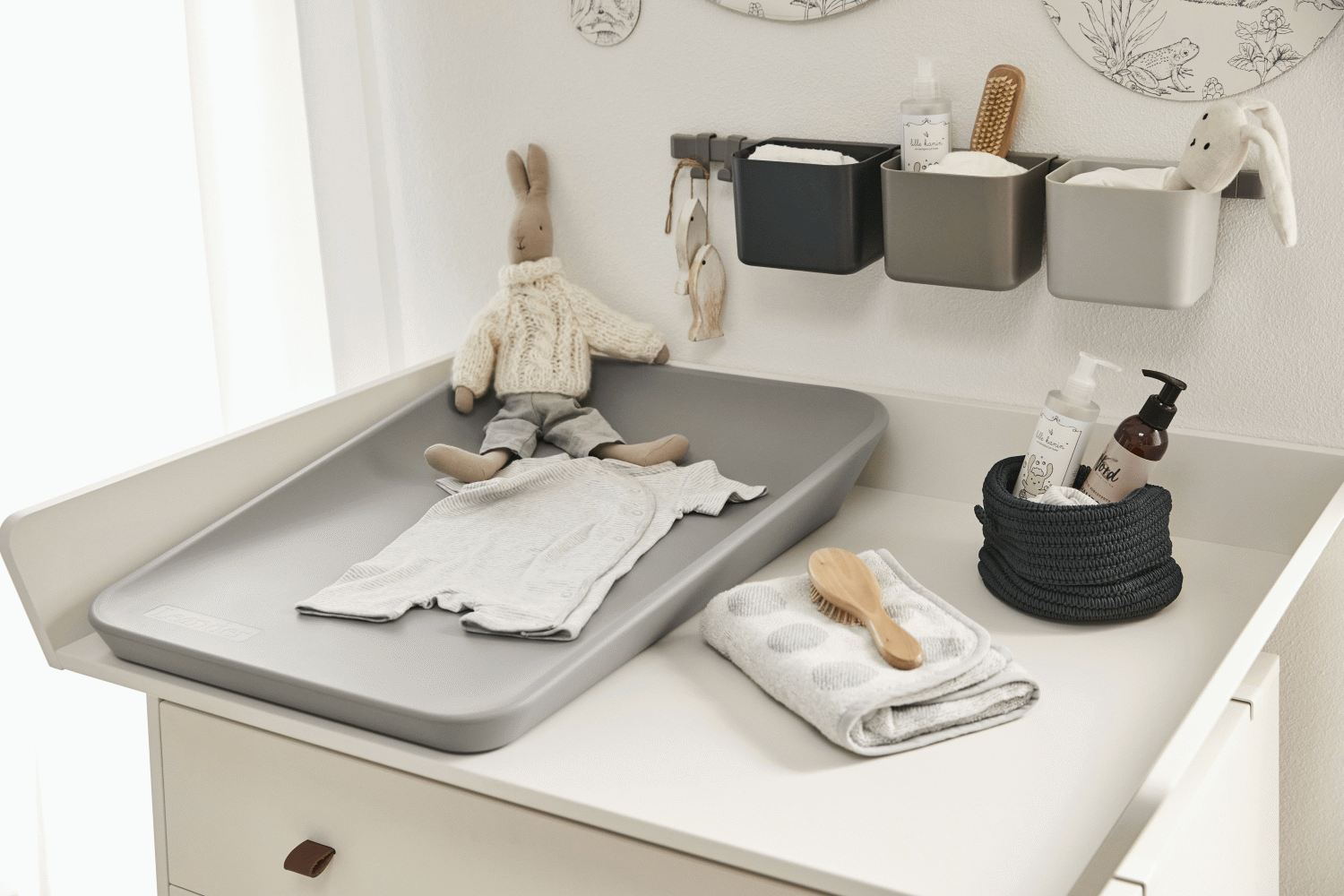 Den vandafvisende overflade kan nemt rengøres med en fugtig klud og mild sæbe, eller desinficeres ved hjælp af en tekstilklud med ethanol eller max. 70% sprit. Det er vigtigt at påføre rengøringsmidler via en klud og ikke direkte på puden. Den slidstærke konstruktion sikrer, at puslepuden bevarer sin kvalitet gennem mange års brug.