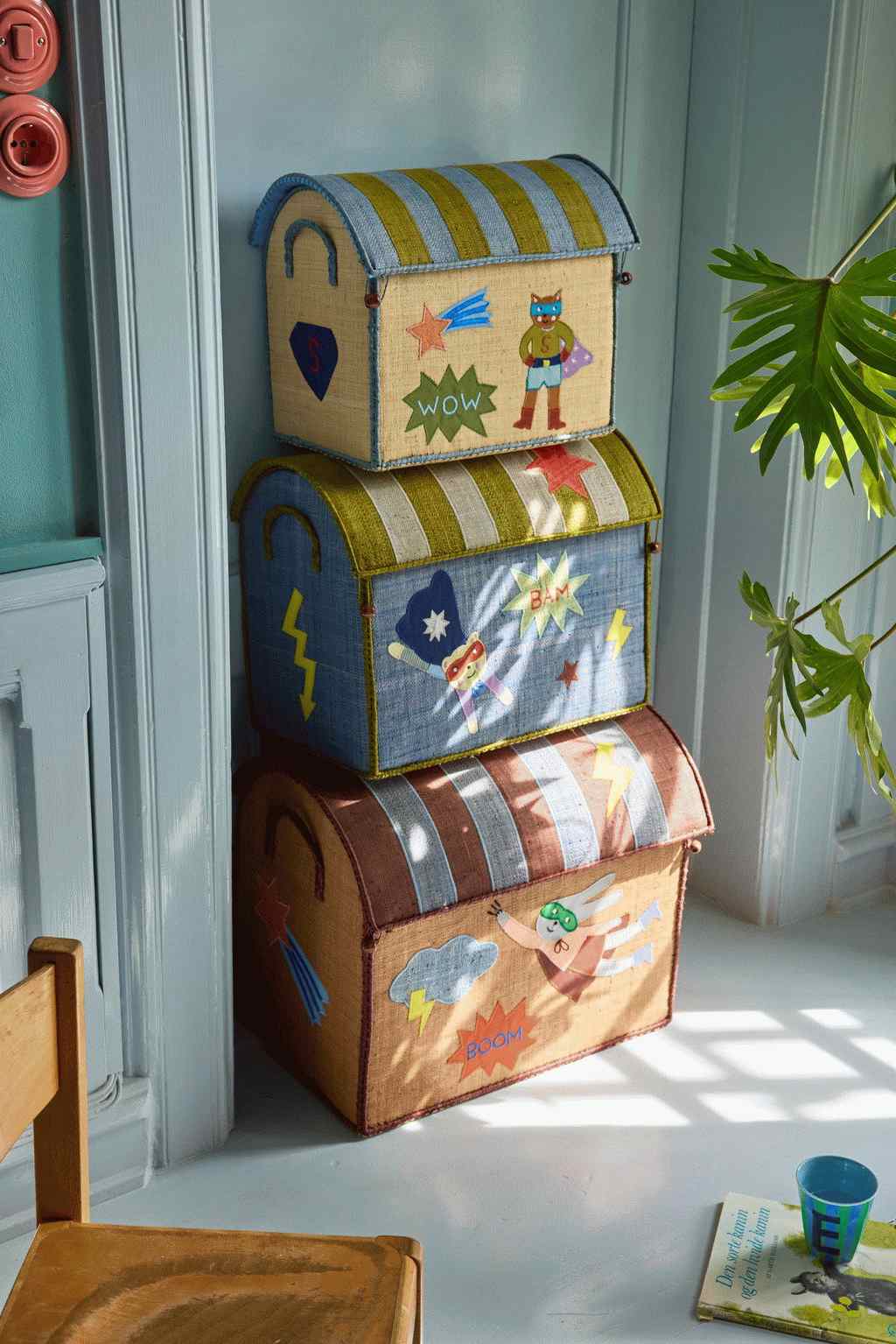 RICE KIDS Hero Opbevaringshus kommer i et sæt med 3 stykker og tilbyder en praktisk og charmerende løsning til at organisere børneværelset. Fremstillet i naturligt raffia-materiale bringer disse opbevaringshuse en varm og indbydende atmosfære ind i rummet, mens de samtidig hjælper med at skabe orden blandt legetøj, bøger og andre små ejendele.Hvert opbevaringshus er designet med en klassisk husform, der tilføjer en legende detalje til indretningen. Den naturlige farve i raffia passer smukt sammen med forskellige indretningsstile og kan nemt kombineres med både farverige og neutrale omgivelser. Materialet giver husene en behagelig tekstur, der føles autentisk og indbyder til leg og udforskning.