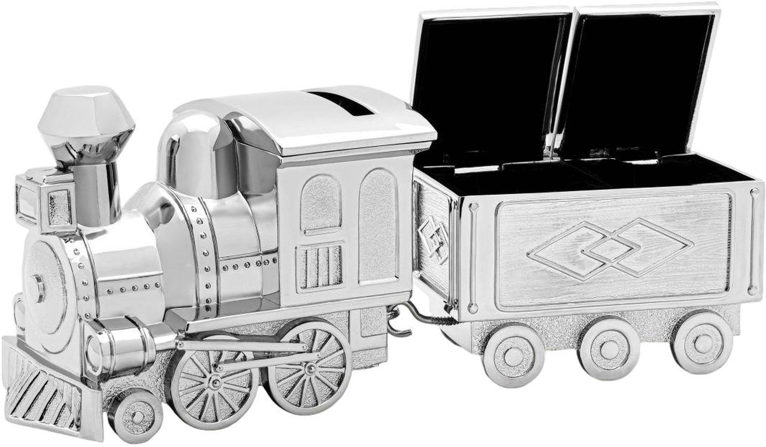 Lokomotivet er gennemtænkt designet med to separate funktioner. Selve lokomotivet fungerer som sparebøsse, hvor mønter nemt kan gemmes væk, mens den medfølgende vogn er perfekt til opbevaring af barnets første tand og de første fine krøller. Dette gør produktet til en ideel gave ved dåb, navnefest eller barnets første fødselsdag, da det både har en praktisk funktion og bevarer uvurderlige minder.