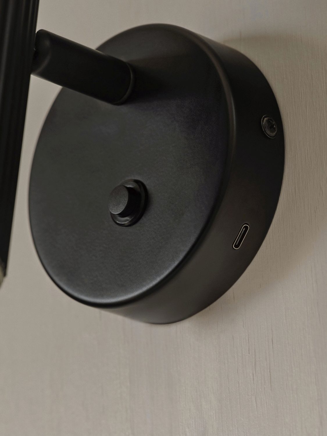 Ud over sin visuelle appel tilbyder Vico væglampen en praktisk detalje, der gør den særligt velegnet til moderne hjem. Den er udstyret med en USB-C-port, som gør det muligt at oplade din smartphone, tablet eller andre enheder direkte ved lampen. Dette gør den ideel til placering ved sengen eller ved skrivebordet, hvor tilgængeligheden til opladning er værdsat.