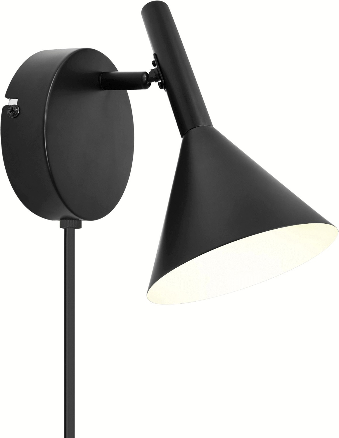 Det grafiske design med den koniske skærm skaber et visuelt interessant element på væggen, samtidig med at lampen bevarer sin diskrete karakter. Den sorte farve giver et moderne og tidløst look, der nemt kan kombineres med forskellige indretningsstile og farvepaletter.
