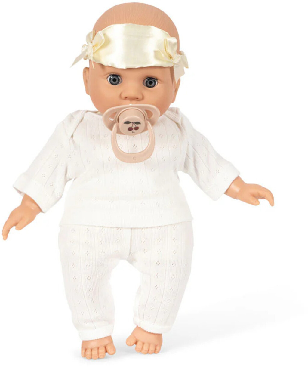 Lea dukken fra Konges Sløjd bringer tryghed og leg sammen i et charmerende design, der fanger børns hjerter med det samme. Denne 32 cm høje dukke er omhyggeligt designet med en blød vinylkrop og et bevægeligt hoved, der kan drejes til begge sider for at skabe en naturlig og livagtig oplevelse under legen.Den karakteristiske Lumina-farve giver Lea et moderne og stilrent udtryk, mens det matchende pyjamassæt og sovemaske tilføjer en sød og realistisk dimension til legeoplevelsen. Konges Sløjds opmærksomhed på detaljer viser sig i hver del af dukken, fra den bløde bomuldsfyld til det omhyggeligt udformede tøj i polyester.