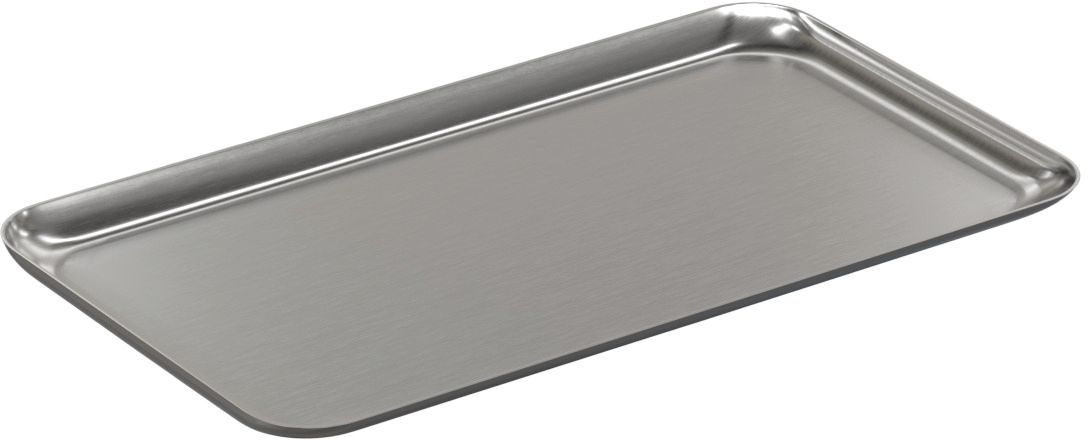 Med en højde på kun 1 cm er bakken let at håndtere og stable, hvilket gør den praktisk til opbevaring i skuffer eller skabe. Den kompakte størrelse gør den også perfekt til mindre anretninger eller som del af et større serveringsarrangement, hvor flere bakker kan kombineres for at skabe et sammenhængende udtryk. Stålets neutrale finish harmonerer med forskellige service- og bordudstyr, hvilket giver fleksibilitet i præsentationen.