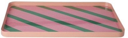 RICE præsenterer denne charmerende bakke i metal, der kombinerer funktionalitet med et legende farvevalg i pink og grøn. Med sine kompakte mål på 32 cm i længden og 22 cm i bredden er bakken ideel til daglig brug i hjemmet, hvor den kan tjene mange forskellige formål.Bakken er fremstillet i robust metal, hvilket sikrer holdbarhed og lang levetid. Materialets egenskaber gør den nem at rengøre og vedligeholde, samtidig med at den bevarer sit flotte udseende gennem mange års brug. Den slanke højde på 1,75 cm gør bakken let at håndtere og praktisk at opbevare, når den ikke er i brug.