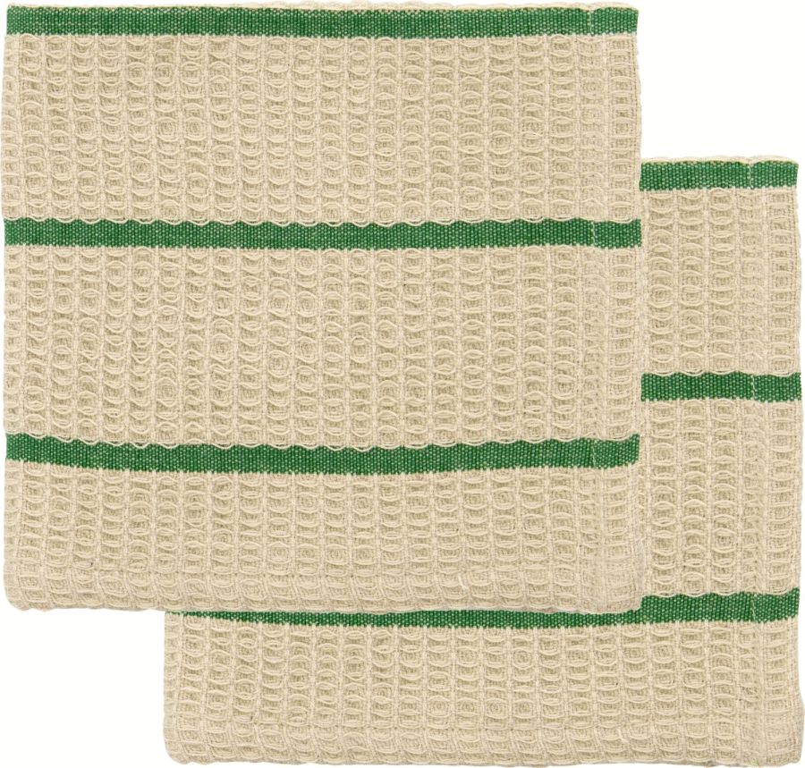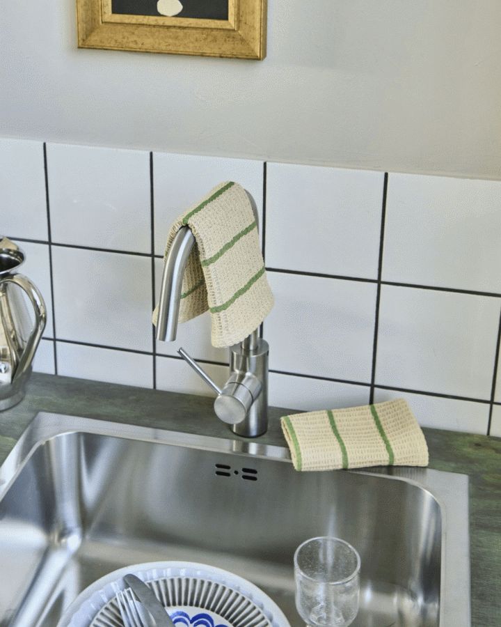 House Doctor præsenterer Rena karkludene, der kombinerer funktionalitet med et stilrent stripet design. Dette sæt består af to karklude i 30x30 cm, der med deres harmoniske farvesammensætning i sand og grøn tilfører et roligt og moderne udtryk til køkkenet.Karkludene er fremstillet i vævet bomuld, som sikrer en blød og behagelig tekstur. Materialet har en høj sugeevne, hvilket gør dem ideelle til daglig brug i køkkenet, hvor de effektivt kan håndtere både opvask og afdrypning. Det stribede design i de afdæmpede nuancer gør dem nemme at kombinere med forskellige køkkenindretninger og giver et sammenhængende look.