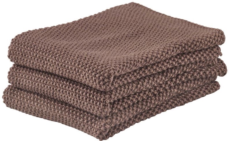 Zone Denmark præsenterer et sæt af tre strikkede karklude, der kombinerer funktionalitet med tidløs skandinavisk design. Disse karklude i en varm brun nuance måler 27 x 27 cm og er fremstillet i 100% bomuld, hvilket gør dem til et naturligt valg for ethvert køkken.Karkluden fra Zone Denmark er designet med fokus på kvalitet og holdbarhed. Den strikkede struktur sikrer en effektiv rengøring, mens det bløde bomuldsmateriale er skånsomt mod alle overflader. Teksturet giver en god balance mellem absorption og rengøringsevne, hvilket gør dem ideelle til daglig brug i køkkenet.