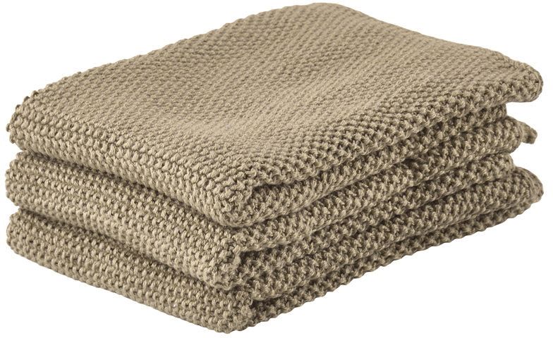 Zone Denmarks strikkede karklude i khaki leveres i et praktisk sæt med tre stykker, der hver måler 27 x 27 cm. Disse karklude er fremstillet i 100% bomuld og repræsenterer en tilbagevenden til det enkle og funktionelle køkkenredskab, som altid har sin berettigelse i det moderne hjem.Karkluden er et uundværligt element i ethvert køkken, og Zone Denmark har formgivet disse karklude med fokus på både æstetik og funktionalitet. Den strikkede struktur giver en behagelig blødhed i hånden, samtidig med at materialets naturlige egenskaber sikrer god absorberingsevne og holdbarhed. Bomuld er kendt for sin styrke og praktiske anvendelsesmuligheder, hvilket gør disse karklude til pålidelige hjælpere ved enhver opgave – fra opvask til aftørring af køkkenbordet.