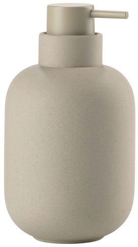 Sæbedispenseren er udført i stentøj, et materiale der giver produktet en behagelig vægt og stabilitet på bordpladen. Den runde bund sikrer, at dispenseren står solidt, selv når den placeres på glatte overflader. Det fine lille pumpehoved er fremstillet i ABS-plast og leverer præcis den rette mængde sæbe ved hvert tryk.