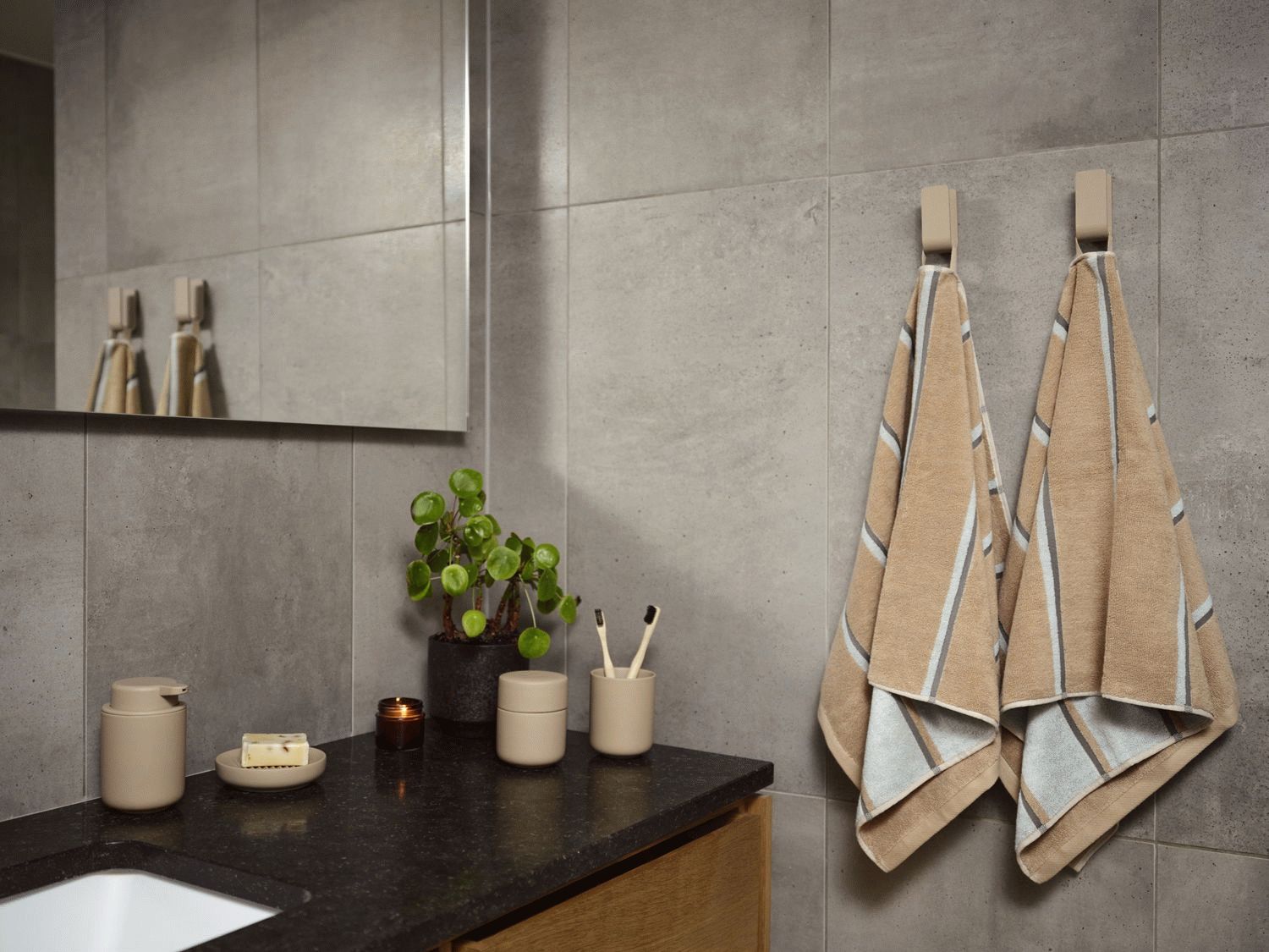 Zone Denmark præsenterer Ume sæbeskål i den varme nuance Camel – et stilrent og funktionelt tilbehør til badeværelset. Sæbeskålen er en del af den gennemtænkte Ume-serie, hvor form og funktion går hånd i hånd i et design skabt af designertrioen VE2.Sæbeskålen fremstår med en behagelig soft touch-overflade, der giver en eksklusiv fornemmelse ved berøring. Den praktiske udformning med riller i bunden sikrer, at overskydende vand ledes væk fra sæben, så den holder sig tør og holder længere. Med en diameter på 12 cm og en højde på 3 cm passer sæbeskålen perfekt til de fleste badeværelser uden at fylde for meget.