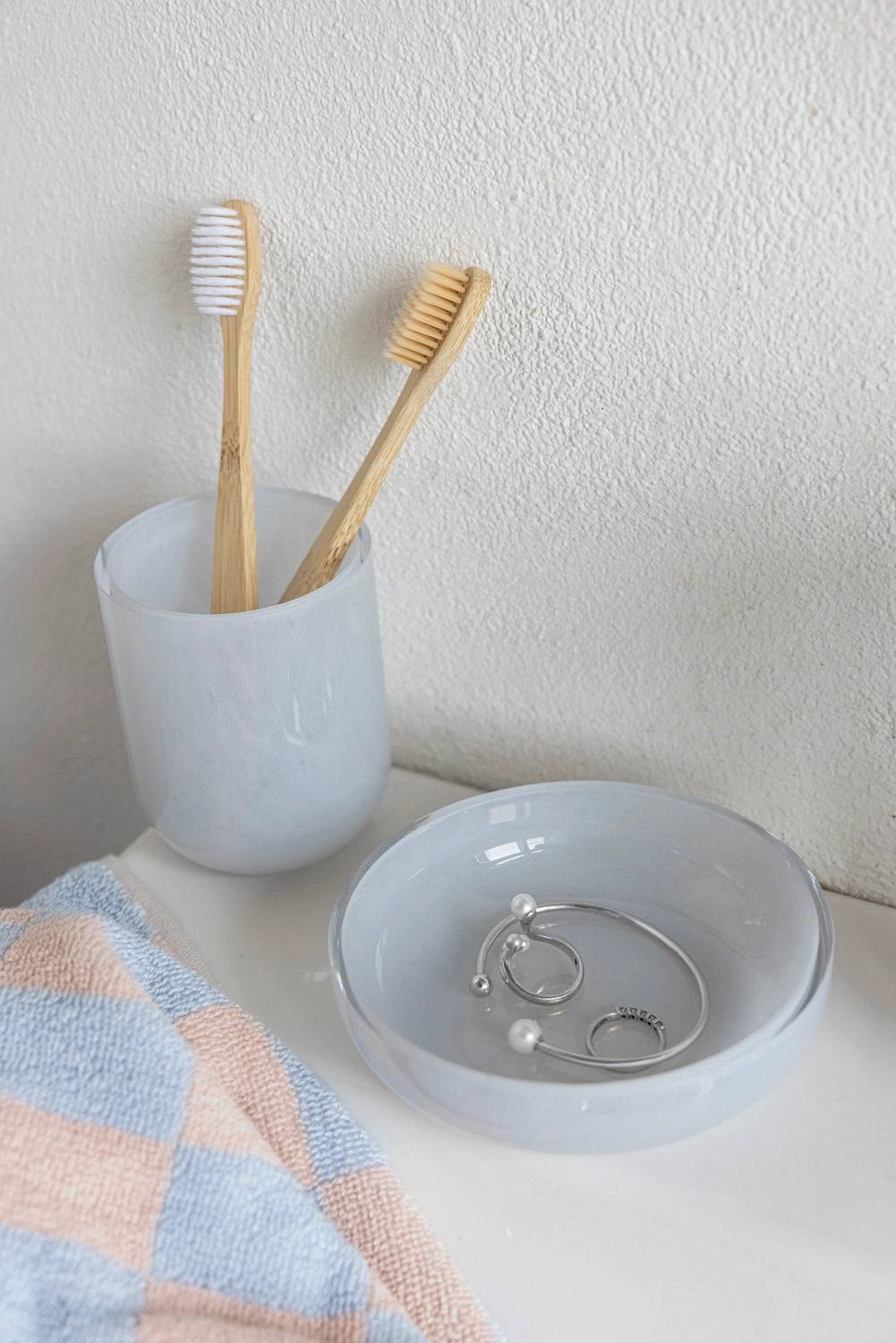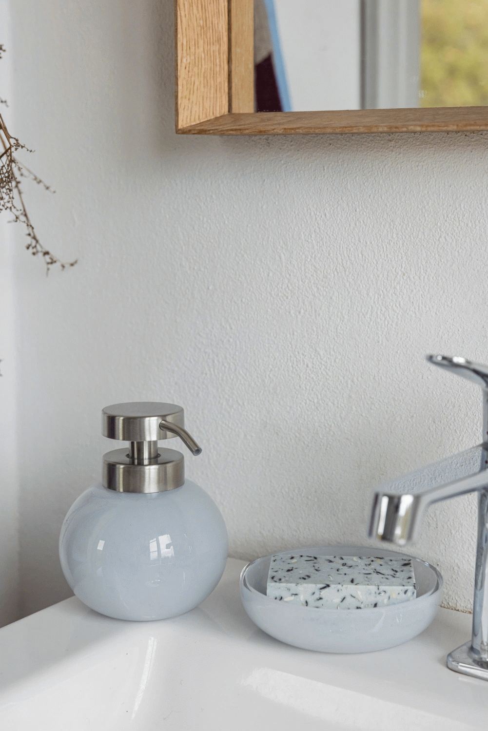 OPAL sæbeskålen i light blue er både praktisk og dekorativ. Det opaliserede glas spreder lyset på en elegant måde og fremhæver skålens organiske form og sarte blå tone. Brug den som base til din yndlingssæbe eller shampoo-bar – en hverdagsdetalje, der tilfører ro og friskhed til badeværelset. Fremstillet i opalglas, som kendes på sin bløde transparens og subtile dybde. Materialet spreder lyset blidt og giver hvert produkt et elegant, levende udtryk.Vask i hånden eller brug fugtig klud. Vi anbefaler alm. opvaskemiddel. Produktet er ikke egnet til opvaskemaskinen.Højde: 3 cm