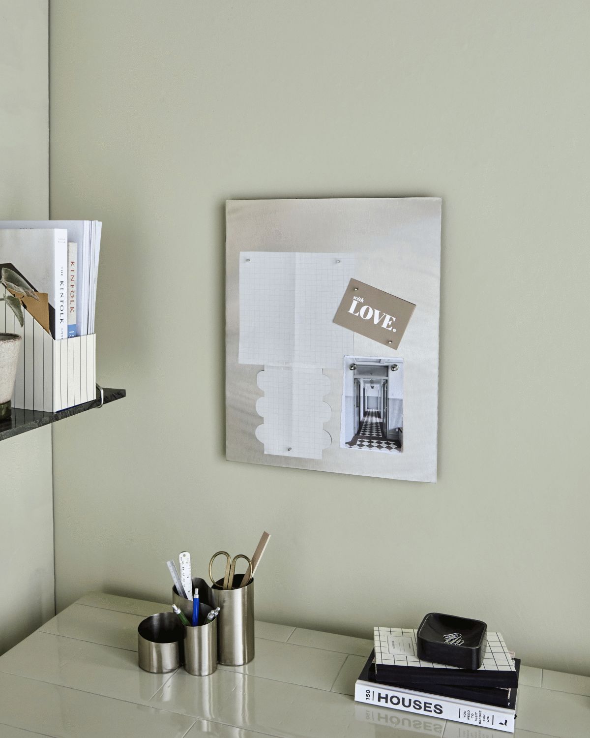 HDNema-opslagstavlen kombinerer et råt, industrielt udtryk med et funktionelt design. Brug den til noter, fotos eller som en markant detalje på væggen.- Råt og taktilt jern.