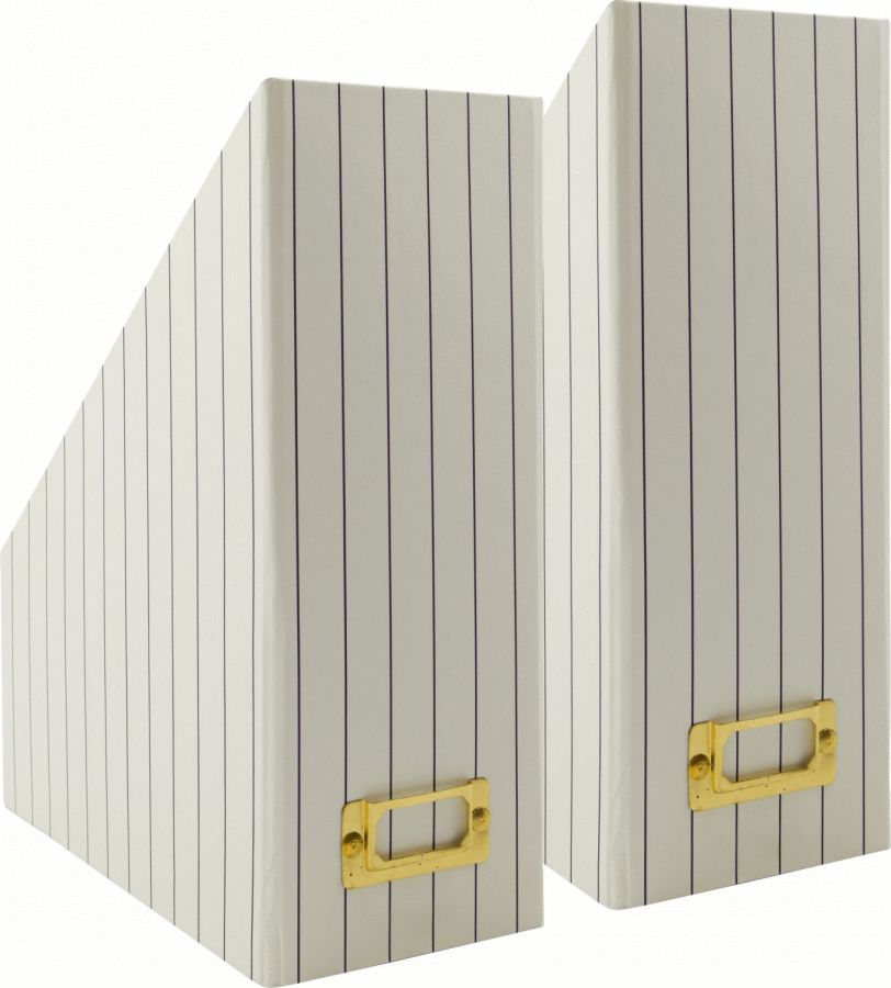 Magasinholderne er fremstillet i robust pap, der sikrer en solid konstruktion til daglig brug. De diskrete jerndetaljer giver produktet en raffineret finish og bidrager til den samlede holdbarhed. Det stribede mønster i sandtonen tilfører et moderne udtryk, der nemt lader sig kombinere med forskellige indretningsstile – fra skandinavisk minimalisme til mere klassiske interiører.